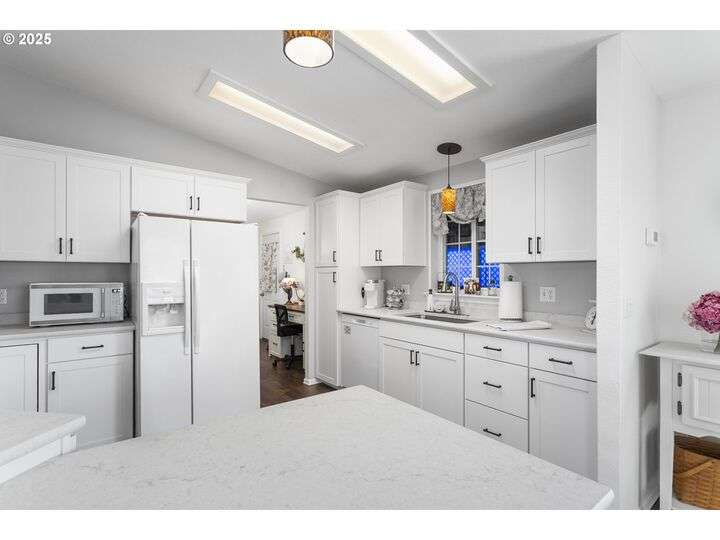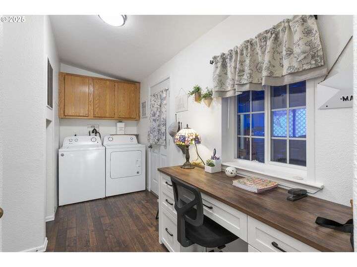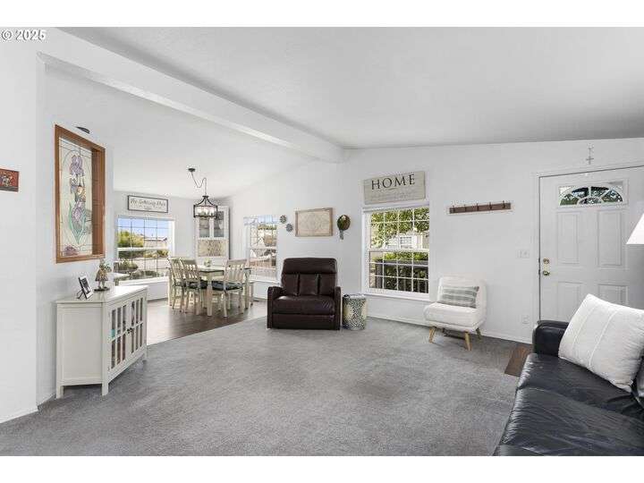 Your Dream Home Awaits in Vancouver’s Premier 55+ Gated Community! Step into comfort and style with this beautifully updated 2-bedroom, 2-bath gem nestled in one of Vancouver’s most sought-after manufactured home communities. From the moment you arrive, you’ll feel right at home. Interior Highlights:Open-concept layout with vaulted ceilings and sleek Pergo flooring in kitchen and bathrooms (carpeted bedrooms for added coziness). Remodeled kitchen featuring quartz countertops, abundant cabinetry, a spacious eating bar, and modern appliances—including a new stove/oven, dishwasher, and garbage disposal. Updated bathrooms with new vanities, fixtures, toilets, and exhaust fans for a fresh, spa-like feel. Generous bedrooms with walk-in closets and newer carpet (just 5 years young). New vinyl windows in select rooms for improved energy efficiency and natural light. Exterior & Extras: Converted garage with new garage door and opener—plus extra storage/workshop space. Private fenced yard and covered patio perfect for entertaining or quiet mornings with coffee. Community perks include a small park, RV parking, and a secure gated entrance. Current space rent is $1,350/month. Prime Location just minutes from shopping, dining, and everyday conveniences. This home offers the perfect blend of tranquility and accessibility.