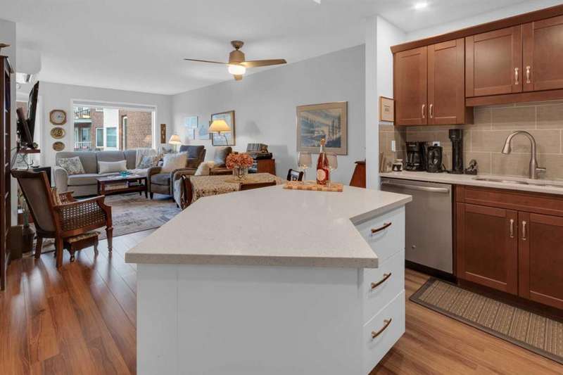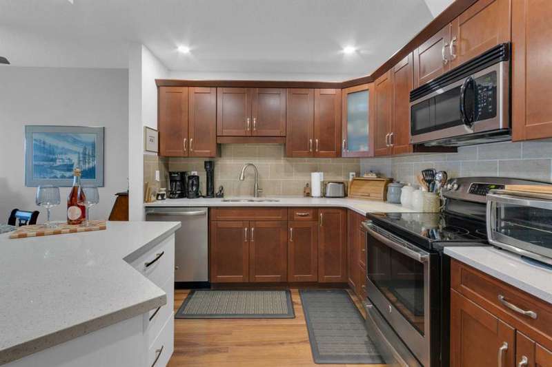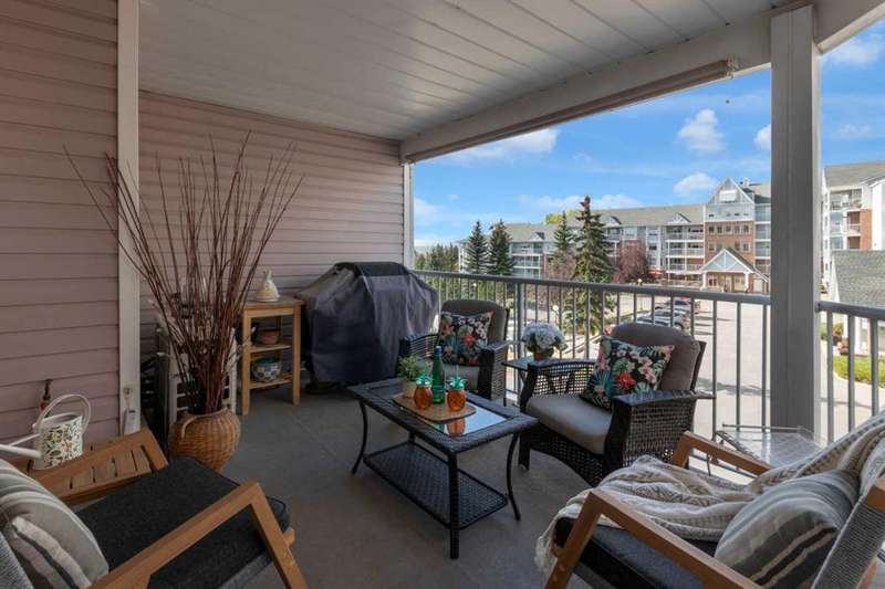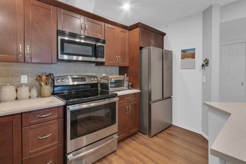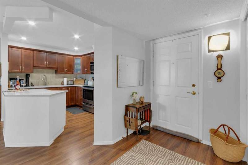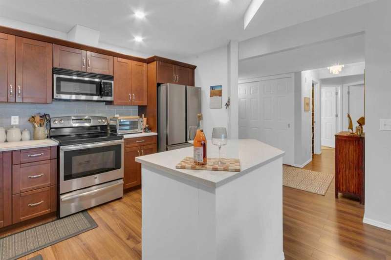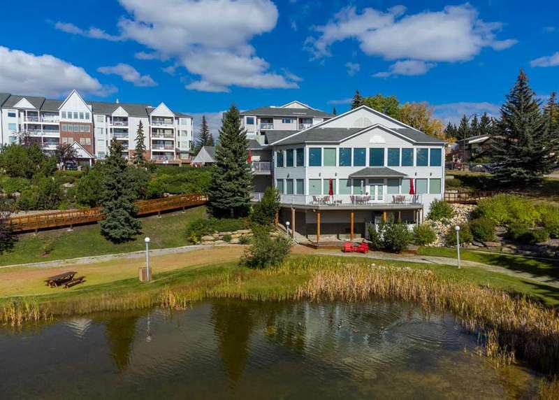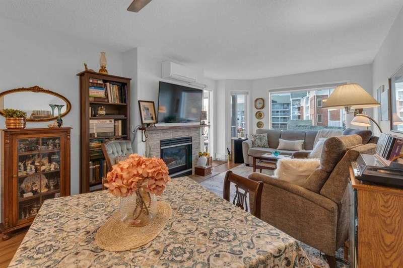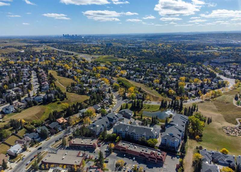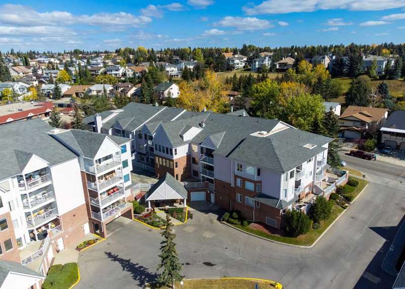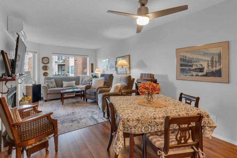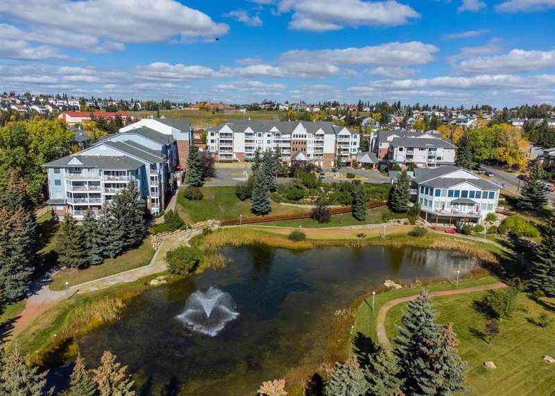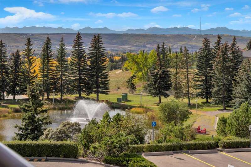 Welcome to your new home in highly sought after Dreamview Village, a 55+ community situated in beautiful, well established Hawkwood! This bright and meticulously updated 2-bedroom, 2-bath condo is designed for easy living and everyday comfort. From the moment you step inside, you’ll notice thoughtful upgrades: fresh paint, stylish new flooring, modern appliances, professional shower renovation and a cozy fireplace for relaxing evenings at home. Step out onto your west-facing deck and take in the stunning mountain views — perfect for morning coffee or BBQ + a glass of wine at sunset. With Central Air conditioning, you’ll stay comfortable all summer long. The layout is practical yet inviting, offering a spacious primary suite, a second bedroom for office or hobbies, and in-suite laundry with ample room for storage. Your car will stay warm and cozy all winter long in the heated garage. Dreamview Village boasts second to none amenities with a spacious, resident-only community centre that is home to a library, kitchen, games room, and large deck. There are no end of activities to sign up and join in on! My favourite feature has to be the gorgeous pond with fountain where you can sit and enjoy watching the wildlife who frequent this peaceful spot year round. Additional highlights include: heated car wash in the garage, a woodworking / hobby shop and reservable guests suites for friends and family visits right in your building. The location simply couldn’t be better — close to the Foothills Hospital, Crowfoot Shopping Centre + YMCA, and the LRT for easy connections around the city. Plus, being right on the west edge of Calgary means quick getaways to the mountains whenever adventure calls. Located in a well-cared-for community with friendly, helpful neighbours you’ll be close to walking paths and everything you need to make life easy. Whether you’re looking to downsize, simplify, or just enjoy a low-maintenance lifestyle, this home is a wonderful fit. Come see for yourself — this condo combines modern touches with the warmth and comfort you’ll love calling home.