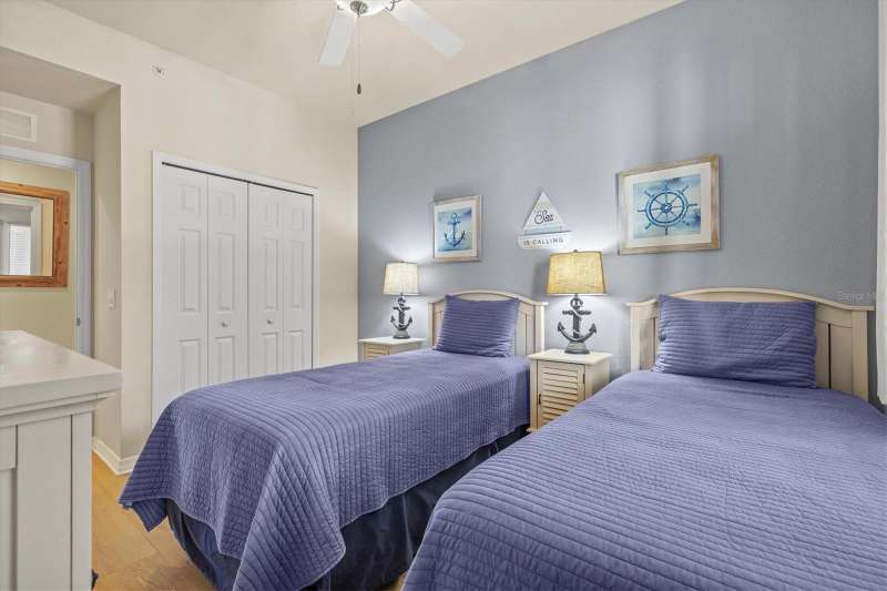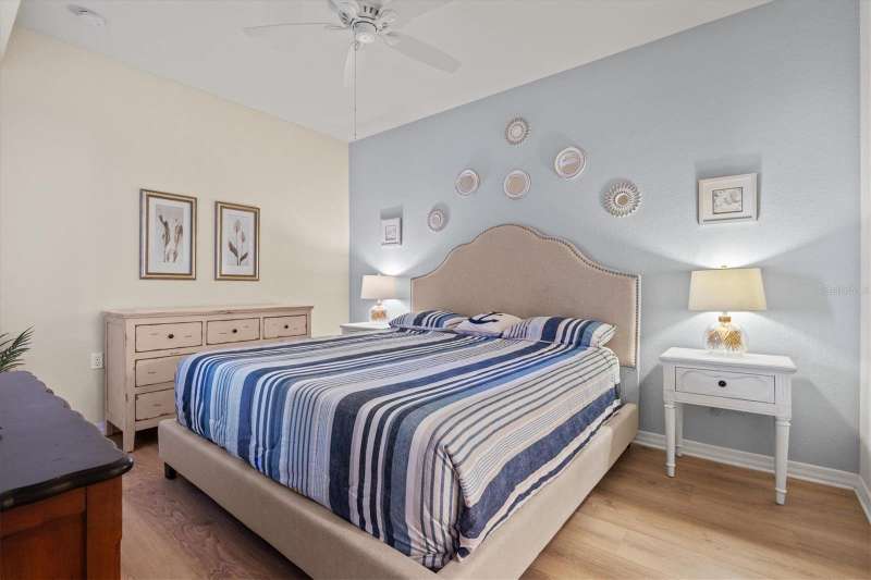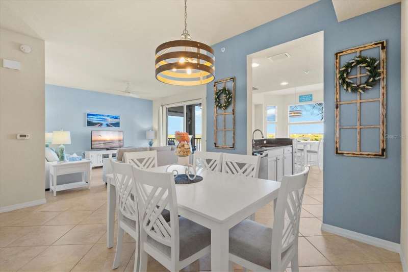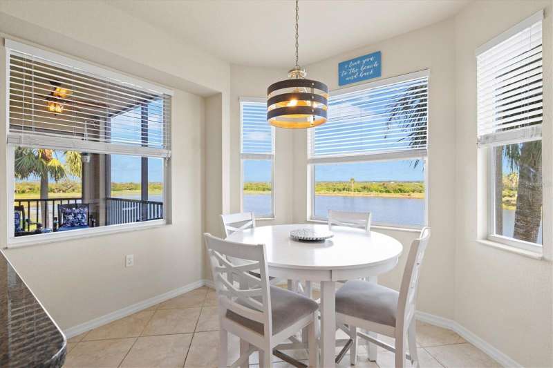 Enjoy sweeping third-floor views of the water and golf course from this fully furnished 2, bed, 2 bath condo in River Strand at Heritage Harbour. Soak in the Florida lifestyle with a screened lanai that provides the perfect place to relax and unwind. The kitchen is open to the living room and features an eat-in dining area as well as breakfast bar. White cabinets and granite countertops combined with stainless steel appliances provide a modern aesthetic. The primary suite features an en-suite bath and dual closets. Both bedrooms have been upgraded with luxury vinyl plank flooring, and the open floor plan allows natural light to fill the living areas. This condo includes full size washer and dryer and all furniture along with basic kitchen necessities and linens, making move-in day a breeze. Note that this is one of the few units with an oversized storage closet, adding coveted storage space for golf clubs, bicycles, beach chairs, etc. Ownership includes a full golf membership, granting access to the 27-hole championship course as well as tennis and pickleball courts, resort-style pools, and a modern fitness center. The River Strand Golf and Country Club is currently undergoing an $8.5 million renovation, focusing on upgrades to the golf courses, clubhouse, and dining facilities. Even during these enhancements, members enjoy regular access to a variety of pools, athletic courts, casual and formal dining, and vibrant social programming. The community is ideally positioned close to daily shopping, healthcare, and dining, with the sandy beaches of Anna Maria Island just a 30-minute drive away. Sarasota-Bradenton International Airport can be reached in under 30 minutes, and quick access to I-75 connects the neighborhood to downtown Bradenton, Sarasota, Tampa and other Gulf Coast destinations.
