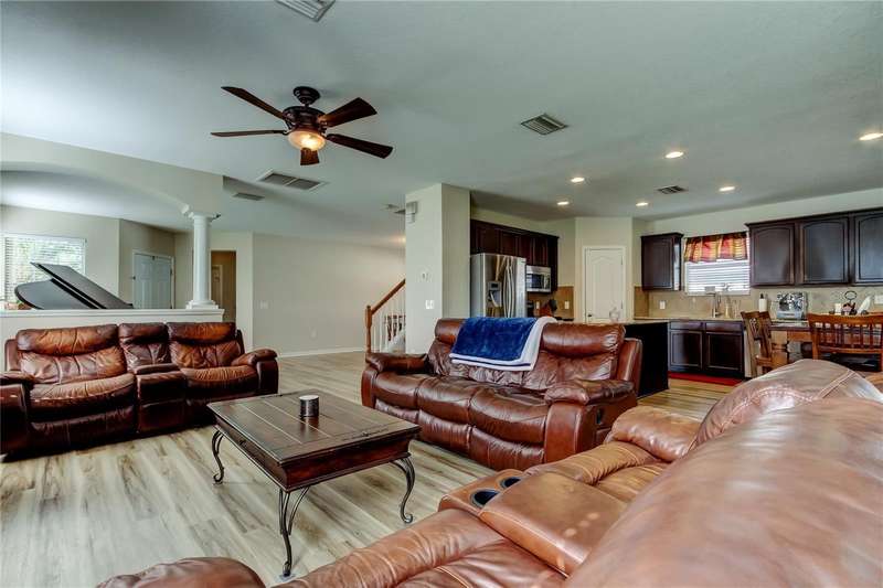 This home is aggressively priced at $167 per square foot and Country Walk has some of the best amenities you will find! *check out the video walk through!* With 4 bedrooms, 2 1/2 baths and nearly 2400 sq ft there is plenty of room to spread out! The current owners have found it to be the perfect layout for raising a family and entertaining over the years. You'll love the open layout downstairs with plenty of space as the dining area flows seamlessly into the family room and kitchen. The luxury vinyl flooring gives a crisp, clean feel to the whole downstairs. There's plenty of counter space in the kitchen and the walk-in pantry provides ample storage for all your dry goods and snacks. Outside you'll get plenty of use enjoying the cool evenings on the screened in lanai with no backyard neighbors! Upstairs the large primary suite overlooks the conservation view and has plenty of room for a chaise lounge or an office space. The 4th bedroom can be used as a massive guest bedroom or a game room, or both! In recent years the owners have replaced the ROOF in 2024, replaced the WATER HEATER just this year, repainted the interior in 2024, installed LVP flooring downstairs in 2024 and more! COUNTRY WALK IS A HIDDEN GEM! The community amenities are great for the active person and they're just a short walk or golf cart ride away. There are monthly activities and classes, weekly FOOD TRUCKS, Santa, the Easter bunny, MOVIES ON THE LAWN and more! You'll also find two pools, tennis courts, the dog park, a FITNESS CENTER, basketball court and playground! Everything you need is close with the Shops at Wiregrass, Publix, restaurants, shopping and I75.