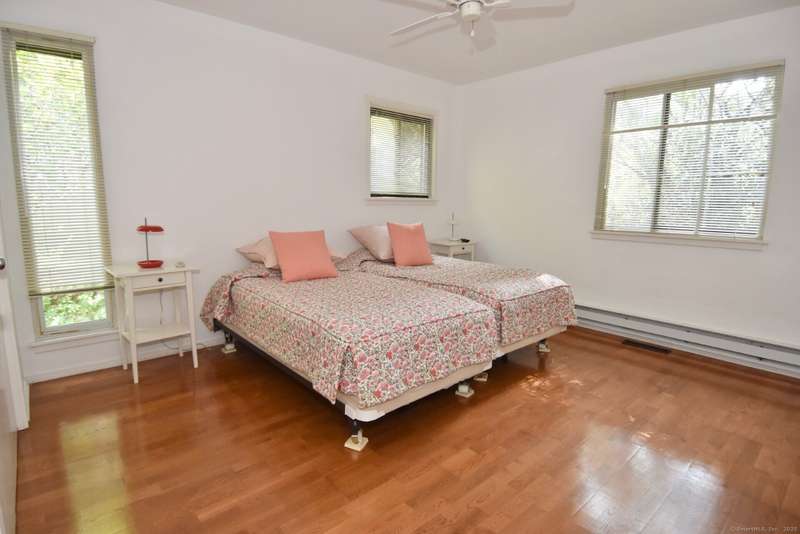 Great opportunity to own a Sherman unit in the well sought after 55+ community of Heritage Village! This unit offers a welcoming Foyer with an Eat-in Kitchen adjacent with recent white cabinets & appliances, butcher block countertops and ceiling fan, and a Living Room/ Dining Room combination with Fireplace, ceiling fan & slider leading to a concrete blue stone Patio. The Primary Bedroom boasts of a Full Bath, ceiling fan, and slider leading to Patio. The second bedroom with ceiling fan offers many possibilities; a guest bedroom, office or den convenient to a full Hall Bathroom. There is hardwood flooring throughout the unit except for the kitchen and baths. Other features include: the one car detached garage with storage which is located closest to unit, ample guest parking & no stairs. Heritage Village has much to offer with its many activities, and close proximity to town for shopping, medical facilities & restaurants. The HOA fee includes Spectrum internet and cable. All Buyers pay
