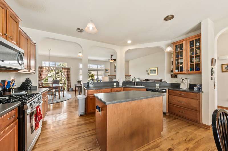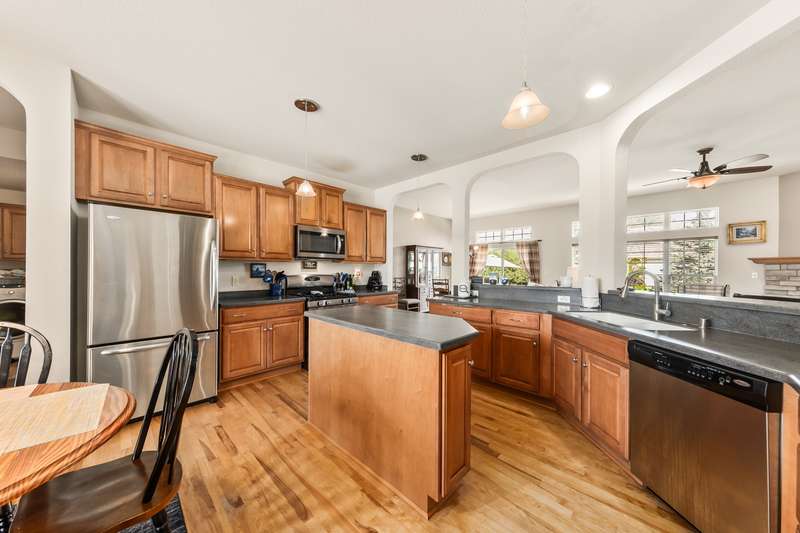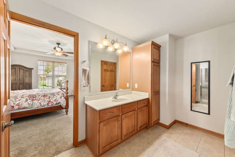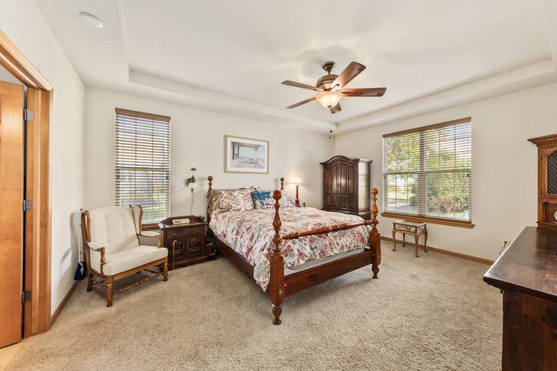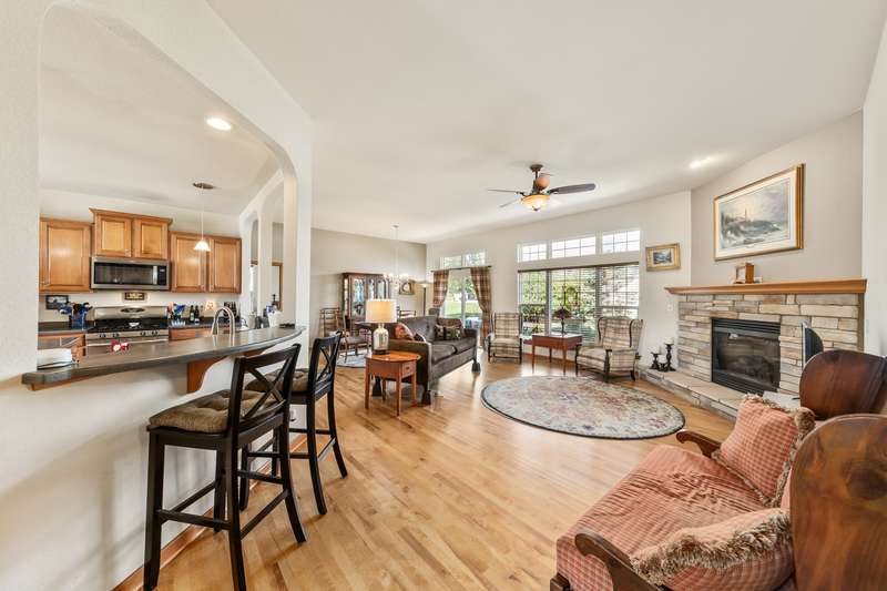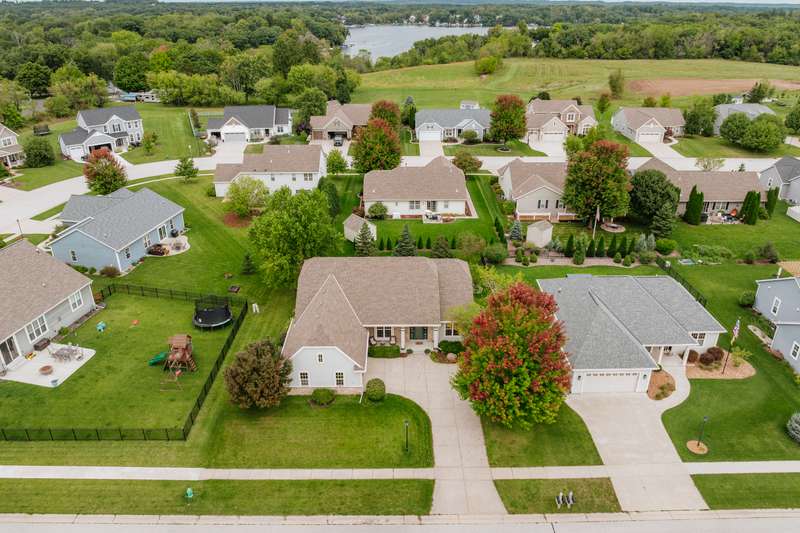 Introducing dynamic and highly functional living at Lake Bluff subdivision in East Troy! Oakmont Drive is the address you will be pleased to give for well-loved Bielinski-built ranch home! Thoughtfully planned at the time of new construction and now offered by the original owner, this 1900 square foot Shorewood floor plan home is an example of one of Bielinski's all time most popular offerings, and this property is sure to deliver! Highly attractive curb appeal starts with the wide concrete drive, side load 2.5+ car garage, a covered front porch with cedar wrapped columns and trim that have been freshly stained, and an overall handsome front facade with cast stone accents. Open the front door to be impressed by volume ceilings, Maple hardwood floors that flow throughout the entire main living area, custom drywalled archways, rounded corners and more! Sleek functionality is the name of the game in the kitchen highlighted by custom maple cabinetry with dovetail drawers, attractive and highly practical Corian solid surface countertops with center island, breakfast nook, and very refreshingly designed breakfast bar/snack counter that opens to the expansive great room. The kitchen is also outfitted with stainless appliances, including newer Whirlpool microwave, all appliances are included for your convenience! A cast stone gas fireplace will warm the hearts of family and friends while the smart use of transom windows and a patio door overlooks the backyard. The roomy dining area is the perfect semiformal flex space that today's buyer's desire for featuring their latest creation in cuisine. A planning desk zone off the dining area is smart, relevant, and completes this welcoming space. This home features a sought-after split bedroom plan with the primary suite with a wonderful walk-in closet, ceramic tiled walk-in shower and incredibly handy access from the primary bath into the main floor laundry area. Talk about convenience and forward thinking! This floor plan modification was made expressly by the owner at the time the home was built and is certainly supreme today On the opposite end of the house, you will find two spacious bedrooms that share an adjacent full bath with shower over tub. Neutral decorating throughout makes this home in incredibly pleasing and easy to imagine as your own! In the backyard, find mature landscaping with established trees including a majestic river birch and brick paver patio for your enjoyment. This home features a poured concrete foundation with wonderful ceiling height, and the ability to craft your own rec room, workout zone or a work from home space of your choosing. The garage interior features fully finished drywall, a slat wall, storage system, and workbench. Nicely located just steps from Lake Beulah, minutes from the Lake Beulah Public Boat Launch, Booth Lake Memorial Park/Beach and minutes to I-43 & Highway 20, commuting will be a breeze. The revitalized East Troy Village Square is home to many local hotspots, dining and nightlife! Call this home before someone else does!