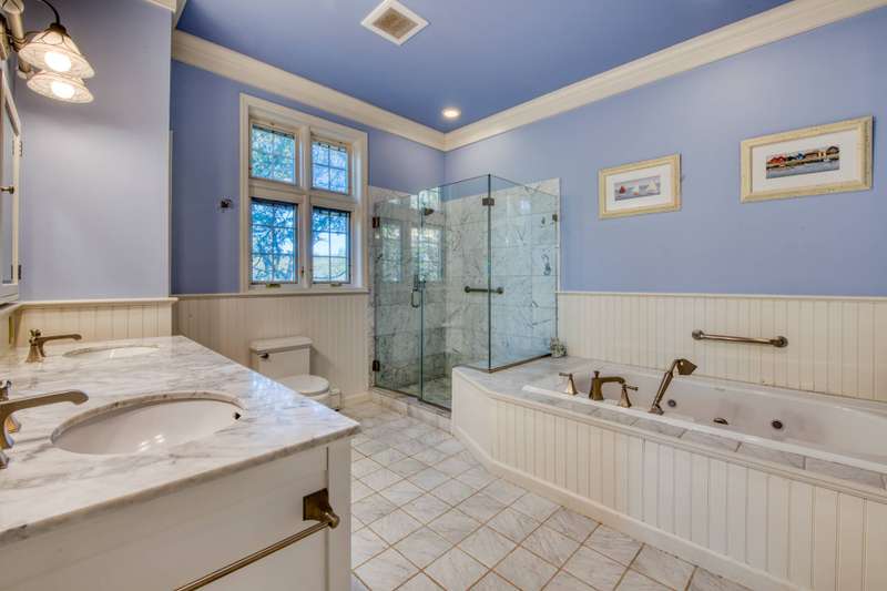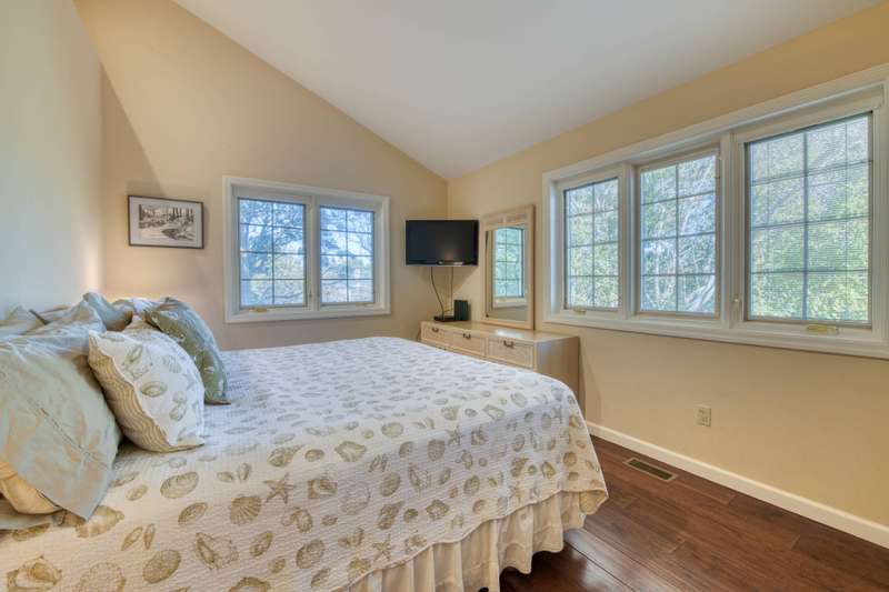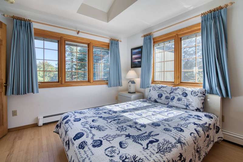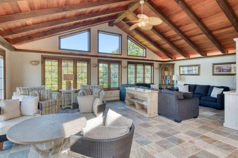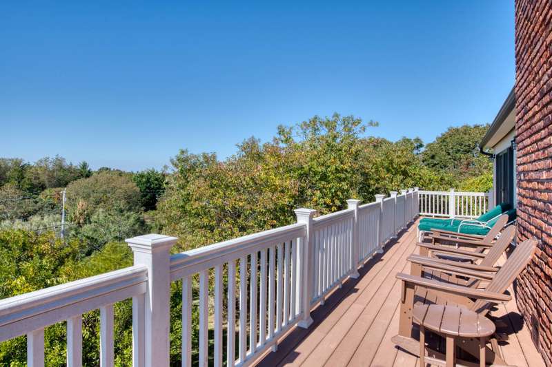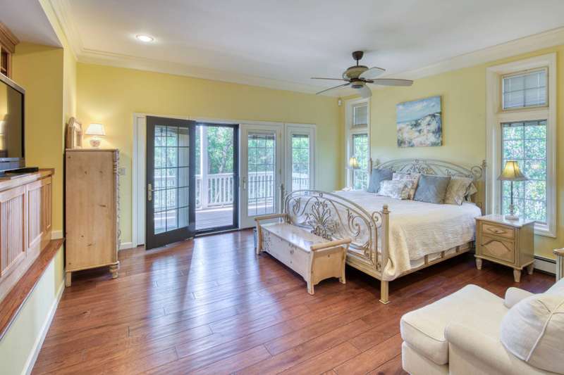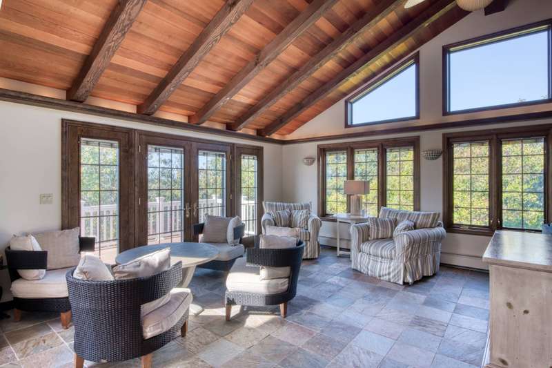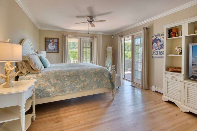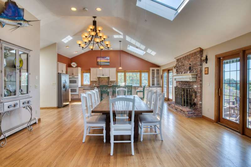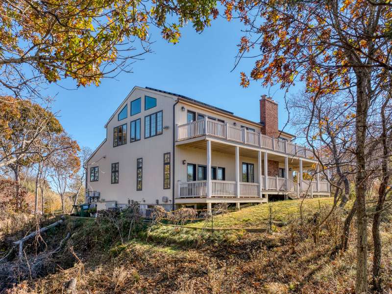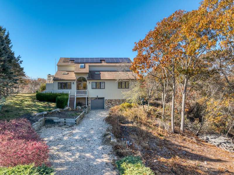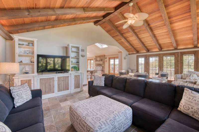Nestled on a shy three quarters of an acre, this five bedroom, four and a half bath home offers the perfect balance of luxury and comfortable living. This three story property features over 4,000 square feet of thoughtfully designed space, including two levels of wrap around decks. The kitchen includes expansive counter space, a large island with room for five, stainless steel appliances, and a generous walk-in pantry. The adjacent dining room, with a center fireplace, comfortably seats ten and leads to a vaulted ceiling living room, large enough to host two separate lounging areas. French glass doors span the length of the floor and open to the upper deck, where you can enjoy Montauk sunsets. The layout of the bedroom floor ensures privacy and comfort for everyone. Two generously proportioned primary suites, each with access to the lower deck, have custom walk-in closets and beautifully appointed baths. Three additional bedrooms are considerably sized and can accommodate queen,