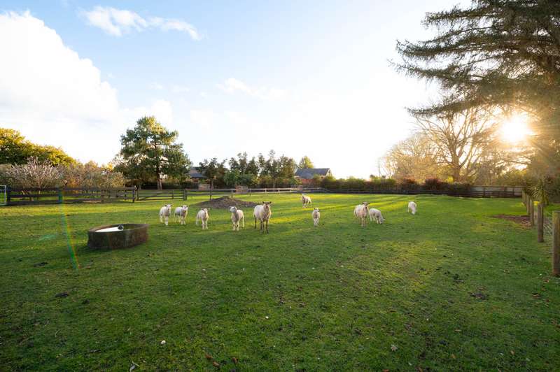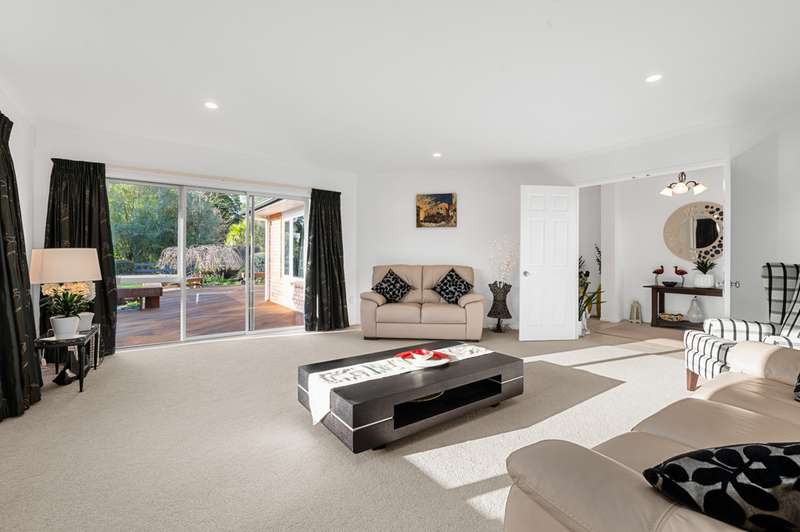 Outdoor living is a true highlight, with multiple patios that follow the sun - ideal for coffee at sunrise, long lunches with friends, or evening drinks surrounded by nature. The grounds are just as impressive: four manicured post-and-rail paddocks, an abundant orchard including four maturing avocado trees, and a tranquil stream winding through native trees, complete with a custom made seat - the perfect spot to sit and listen to kereru overhead.