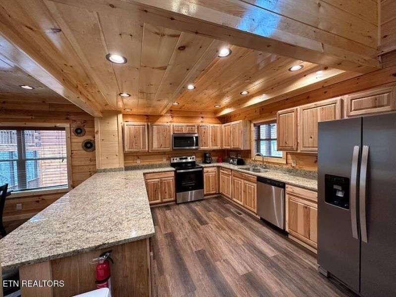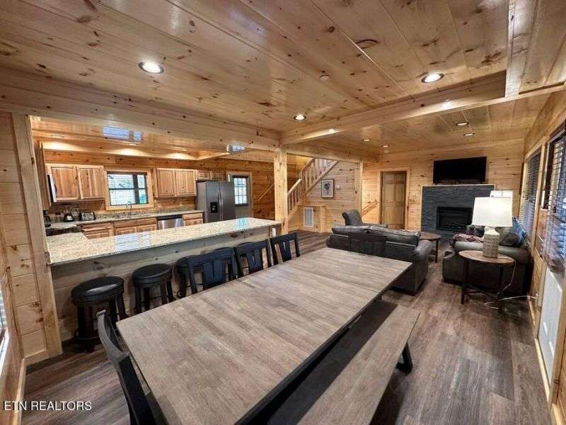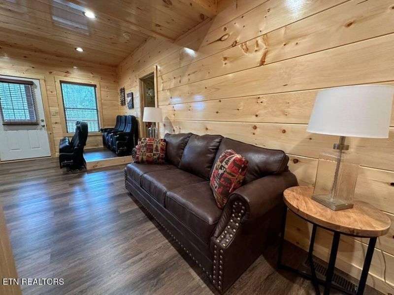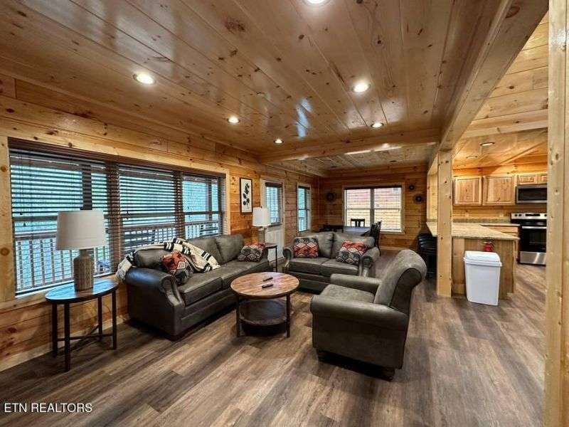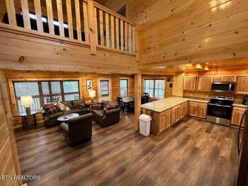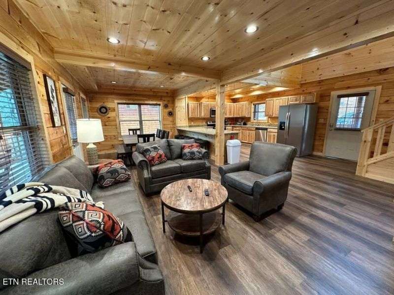Located less than 1.5 miles to the heart of the Parkway in Pigeon Forge, this 5 bedroom, 5 bathroom cabin comes fully decorated & furnished with everything you could need for use as a short-term-rental or vacation home. Positioned along the ridge, this cabin boasts mountain views from any of the multiple covered back decks, plenty of gathering spaces including a game room with pool table, and a media room! Other features include:stainless steel appliances, washer & dryer, granite counter tops throughout, 4K Roku TV's in every room, tongue-in-groove knotty pine and log walls, durable luxury vinyl plank flooring, and hot tub with privacy screening.There are 4 King suites and a bunk room, each with it's own private bathroom, in addition to 2 sleeper sofas, bringing the capacity to accommodate 16 guests! This new cabin development is very unique with it's superb location, easily accessible and in close proximity to all of Pigeon Forge and Gatlinburg's many attractions and dining experiences. ---Call today for additional information. All information deemed reliable but not guaranteed, buyer/buyers agent to verify all information.
