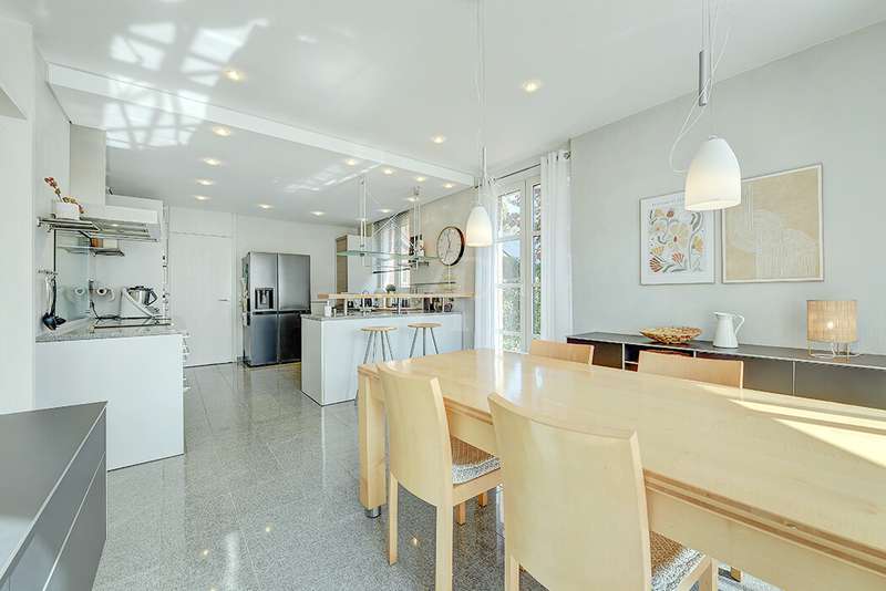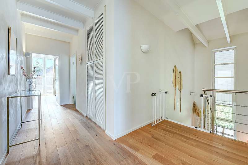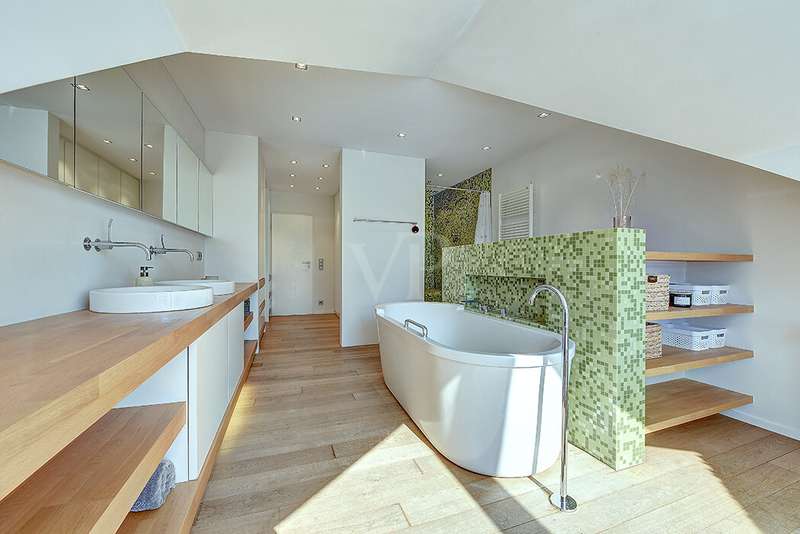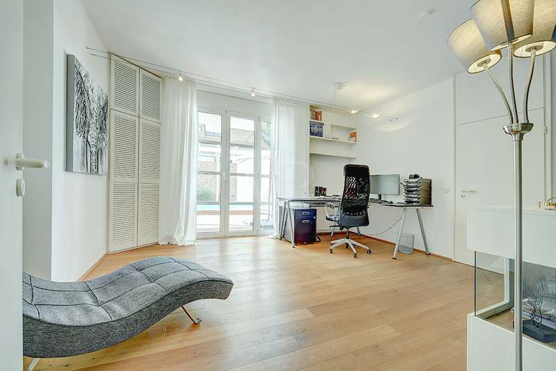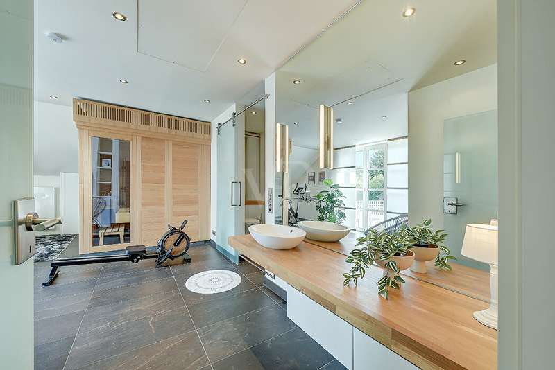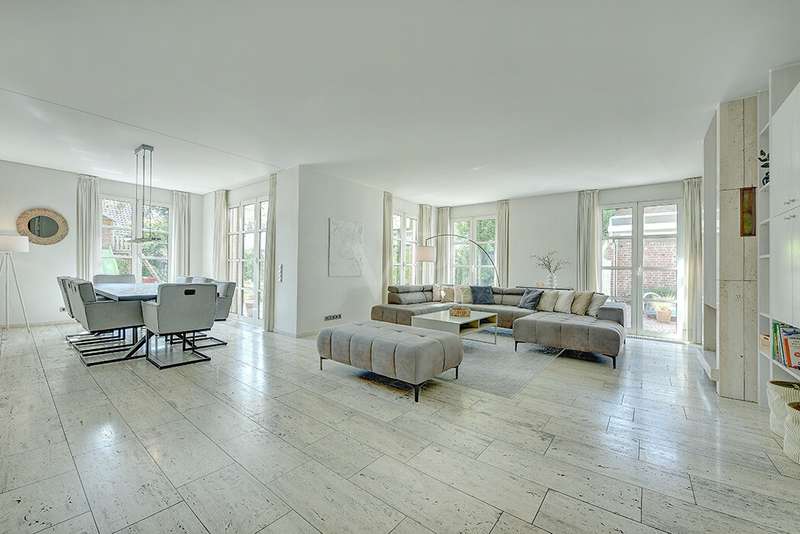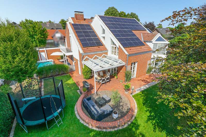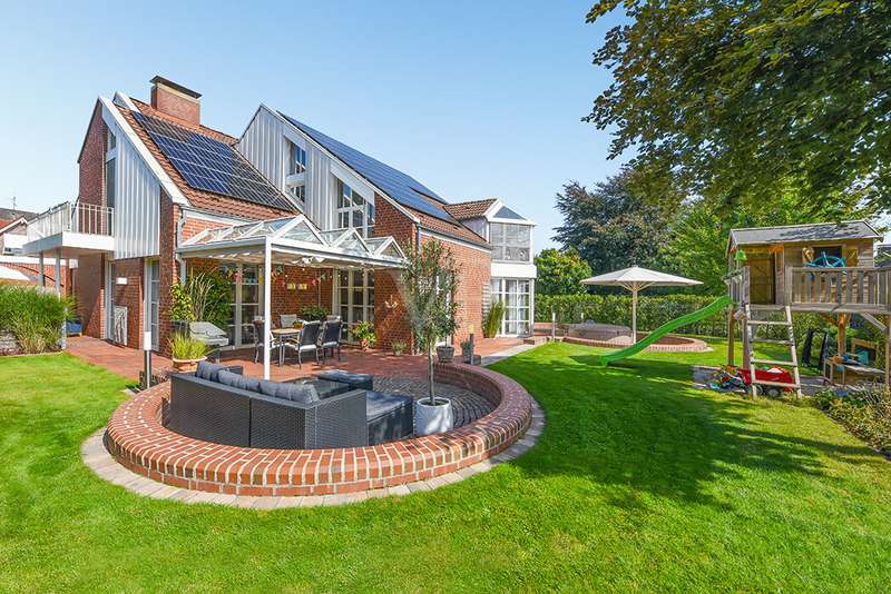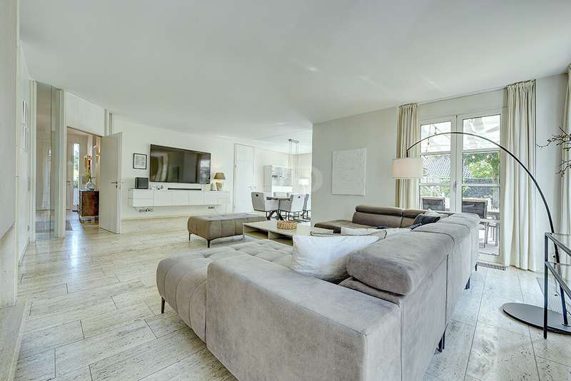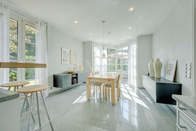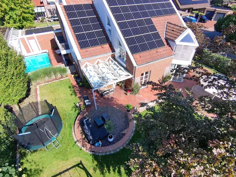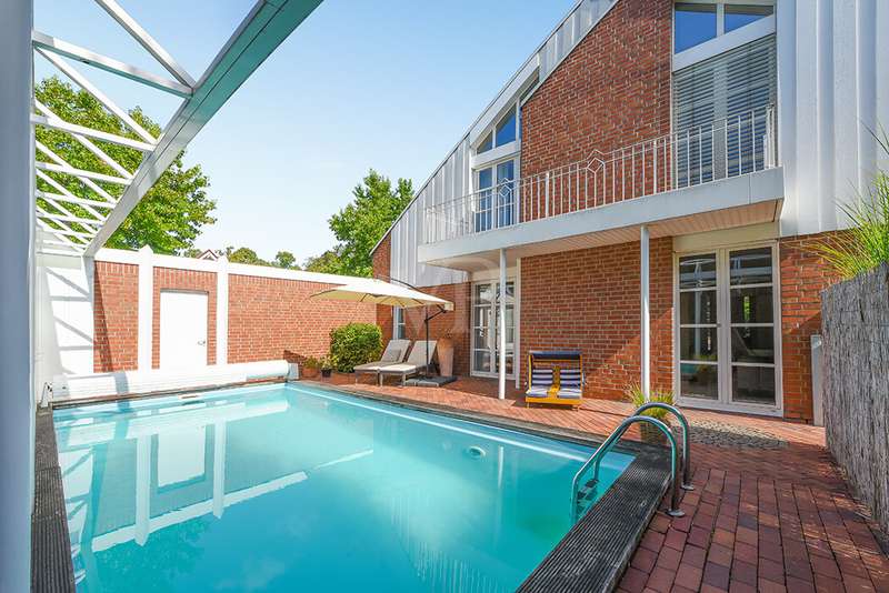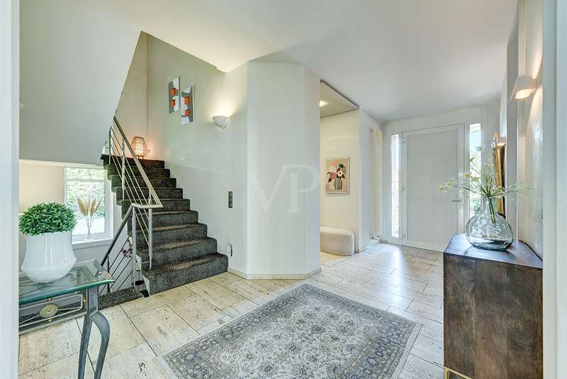 As soon as you enter, you will feel the spaciousness and warmth that this detached house radiates. With approx. 246 m² of living space and a lovingly landscaped plot of around 751 m², this is a place where you will want to come and stay. The house has been continuously modernized and was last staged in 2023 - a home that harmoniously combines tradition and modern living comfort. The heart of the house awaits you on the first floor: a spacious living and dining area with an open-plan design that conveys a feeling of freedom and togetherness. Large windows let your gaze wander into the idyllic garden and create a seamless connection between inside and outside. From here, you enter the sun-drenched terrace - your personal space for relaxing evenings or social gatherings. In summer, the pool invites you to enjoy refreshing moments - a real highlight for the whole family. The kitchen, which is both practical and cozy, quickly becomes the hub of everyday life. With the dining table at the back, the kitchen is as functional as it is charming. Further along the hallway, you reach the office with access to the pool. You then enter the utility room and another bathroom with shower. A guest WC rounds off the space on the first floor. Three inviting bedrooms await you on the upper floor, creating retreats for the whole family. Whether as a master bedroom, children's room or home office - there is space here for your individual living ideas. The two modernized bathrooms - some en suite - offer elegant sanitary elements and high-quality fittings. The separate sauna with bath provides a spa feeling in your own home. The fitness room in the basement offers further variety at any time of day. The property is also technically impressive: comfortable underfloor heating on the first floor, modern radiators in the attic and reliable gas heating, which was renewed in 1998. The comprehensive renovation in 2009 and the garden design in 2019 underline the well-kept and high-quality overall impression. The outdoor area is a true paradise: Whether a play and leisure area for children, cozy retreats in the greenery or relaxing hours by the pool - every member of the family will find their favourite spot here. There are practical and sheltered parking spaces for your vehicles right next to the house. This detached house combines everything that makes living special: spaciousness, comfort and an ambience that invites you to feel at home. Here you will not just find a house - here you will find a home. Last but not least, the technical equipment should be emphasized, the PV system with 25 kWp, 19.5 kWh storage capacity and emergency power capability. The property is available by arrangement. We would be happy to send you a detailed exposé with pictures and are of course also available for an individual viewing appointment. We look forward to your inquiry.