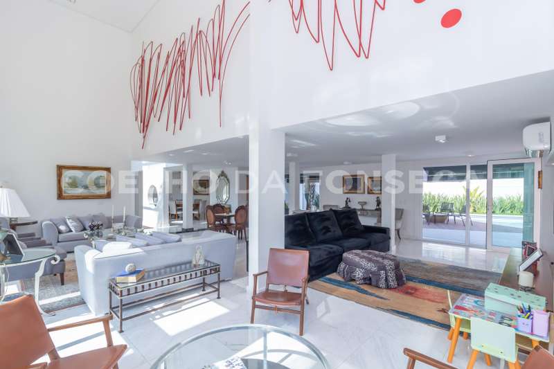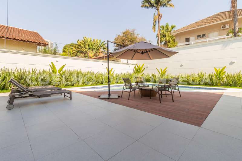 Casa alto padrão em excelente condomínio, fino acabamento piso em mármore, living vários ambientes, equipada e decorada, gourmet integrado, piscina e lindo paisagismo. Total infraestrututa de segurança.