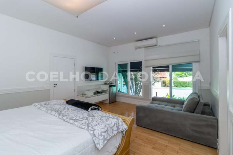 Casa no condomínio ALPHAVILLE 2, com 550m² área construída, 4 dormitório(s), 4 suíte(s), 6 vaga(s), 4 banheiro(s), piscina, esquina, sauna, mobiliado (a), dep. de empregados, varanda.