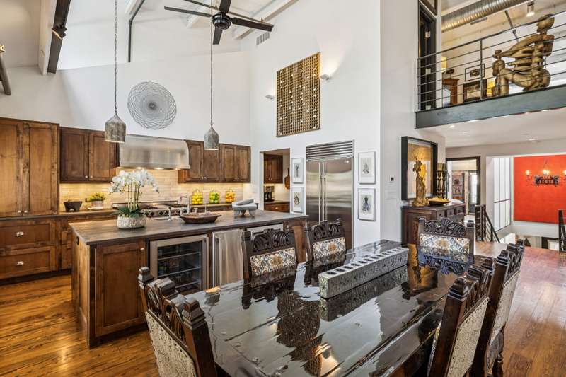 An extraordinary residence within the oldest historic neighborhood in Texas - San Antonio's King William Historic District, this 4,014-square-foot loft unfolds across three levels. Steel beams and exposed brick form the backdrop for interiors that move fluidly between grand gathering spaces and more intimate alcoves, punctuated by multiple patios and balconies that extend the living experience outward. The floor plan offers four distinct living areas, each with its own atmosphere: from a soaring double-height living room edged in industrial windows to fireside seating arranged with sculptural precision. The kitchen takes its place as a functional and aesthetic centerpiece, finished in warm wood cabinetry, professional-grade appliances with gas cooking and dekton countertops Two private bedroom suites anchor the plan, complemented by additional flexible sleeping areas and four full baths. The primary suite is a dramatic gesture in wood and steel, crowned by a custom canopy bed beneath vaulted trusses, with a Japanese copper soaking tub fed by a ceiling-mounted faucet creating a striking focal point in the bath. A curated environment that is part gallery and part sanctuary, this residence offers the scale and function of a house within San Antonio's most storied district and stands as one of its rarest offerings. 4,014 sq ft 2 bedroom suites (with 1-2 additional sleeping areas) 4 full baths 4 living areas 3-levels 4 patio/balconies - 11/10/2025 3:16:14 AM