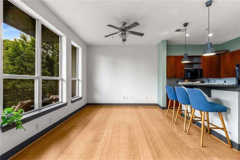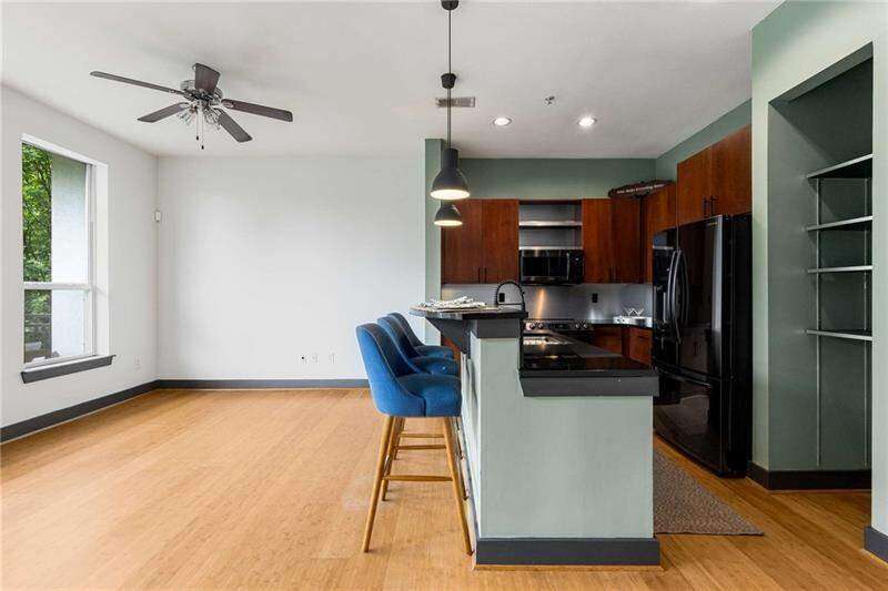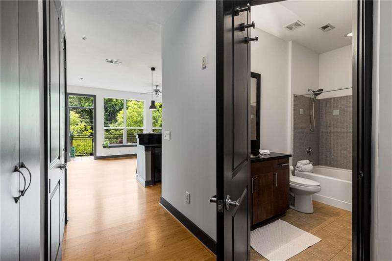 Atlanta BeltLine Living in vibrant Old Fourth Ward. Updated loft style condo with private, direct access to the Eastside Atlanta BeltLine and pedestrian access to all the spots....Forth, Ponce City Market, Inman Park, Beltline Kroger, and Krog St Market...etc etc. The home is bathed in natural light with the back wall of windows where you can enjoy the balcony and views beyond. Well equipped kitchen with updated black stainless appliances, and open pantry. Bedroom has walk in closet, built in storage cubby and easy access to the bathroom. Linen closet and laundry closet provide additional storage space and this unit also comes with its own storage space. Inside the gated community you will enjoy the pool, outdoor BBQ, fitness, club room, and dog park. This is convenient, city living!