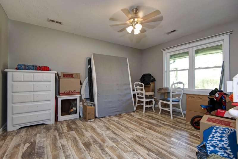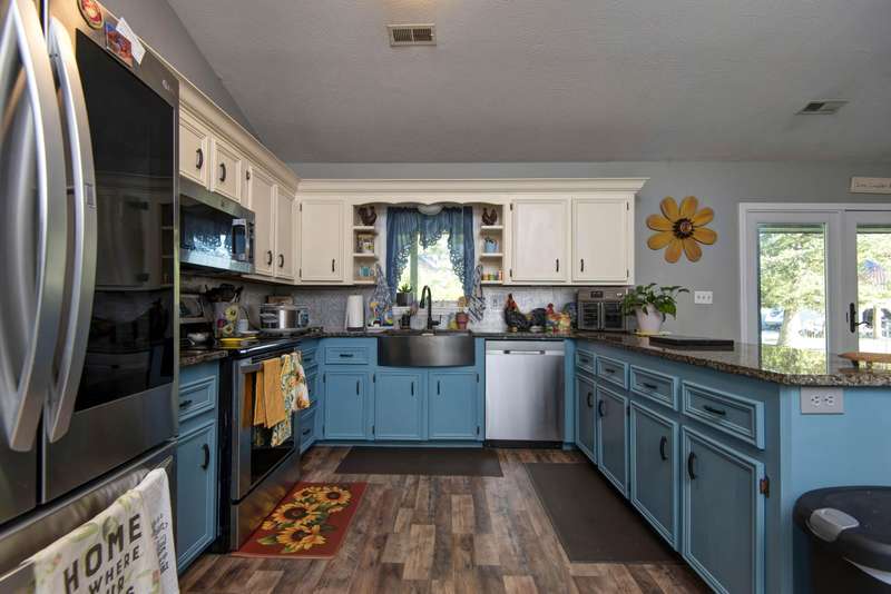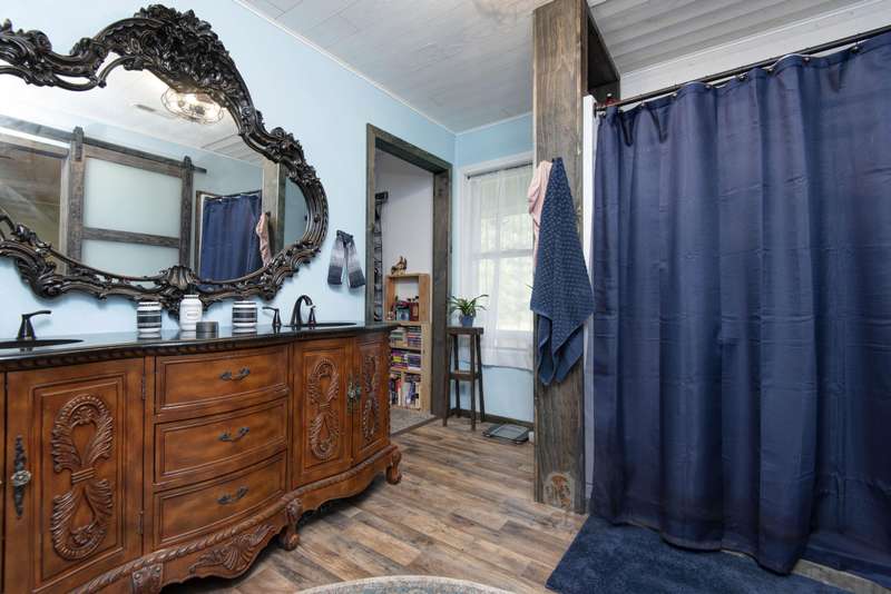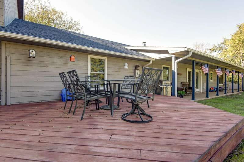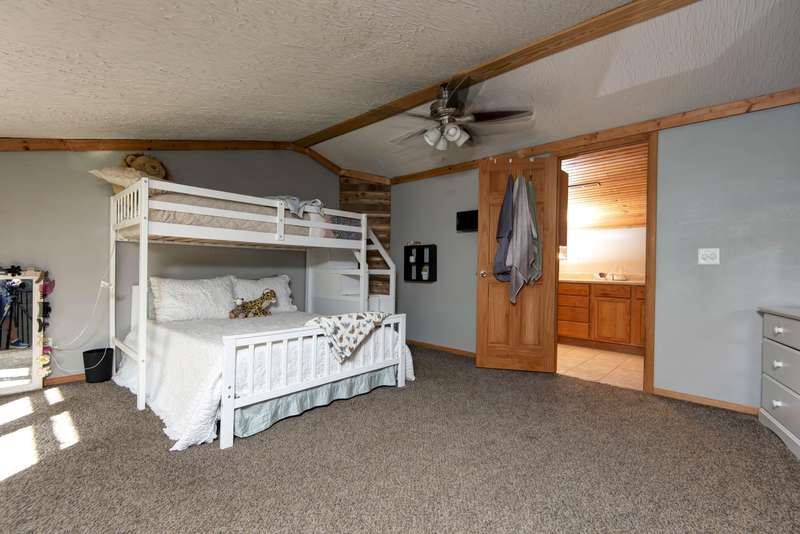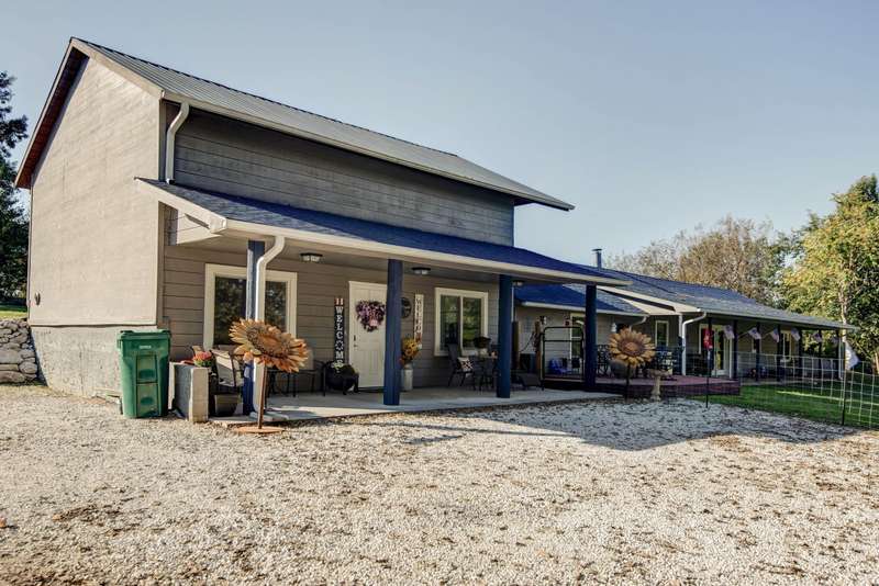 Tucked away at the back of a peaceful 7-acre lot, this property offers a private country retreat to call home. Inside, the main level features two spacious bedrooms, each with its own full en suite bathroom for ultimate convenience. There is an additional half bath on the main level.The kitchen opens seamlessly into one of the home's two living areas, which includes charming built-in bookshelves. A generous 3' x 16' pantry provides ample space for all your essentials.At the opposite end of the home, a second living area offers flexibility for a variety of uses--whether you're envisioning a home office, entertainment room, or creative studio. From here, a spiral staircase leads to the third bedroom upstairs, which also includes its own private en suite bath.Over the past three years, the home has seen numerous updates, including new water heaters, updated windows and doors, granite kitchen countertops, and new flooring. A new HVAC system was installed in 2022 to heat and cool the single story portion and upstairs bedroom. However, the current owners prefer using a window unit or space heater in the upstairs bedroom for more customized temperature control. The second living room is not heated and cooled by the HVAC system but is set up to add your own pellet stove.Outside, a 30' x 40' barn with four parking stalls provides plenty of room for storing equipment, vehicles, or recreational toys. The barn has electricity and includes a dedicated workshop area. Washer and dryer are included with the home.