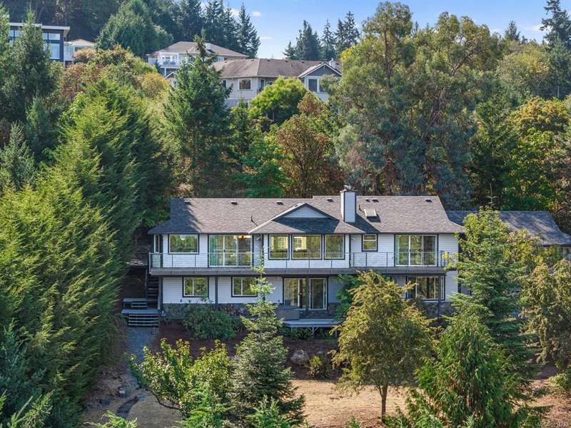 Architecturally designed & beautifully maintained, this Ardmore home offers bright, open principal rooms with sweeping views of a serene backyard. Pride of ownership is evident throughout this fully updated residence. The formal living room features a vaulted ceiling & a rotunda with wraparound windows overlooking the private outdoor area. The elevated dining area connects to a custom kitchen with ample cabinetry & a walk-in pantry. A cozy wood stove warms the family room, which includes a built-in home office. The peaceful main-floor primary suite has a 3-pce ensuite & walk-in closet. Upstairs are 3 spacious bedrooms, two with access to a sunny, south-facing deck. The finished lower level provides a great flexible space. An oversized double garage adds bonus workshop & storage space. Dual heat pumps and an HRV system ensure year-round comfort. Close to trails, a nine-hole golf course, and several beaches, this is the best of Ardmore living.