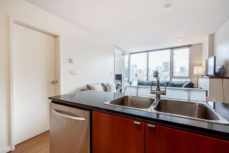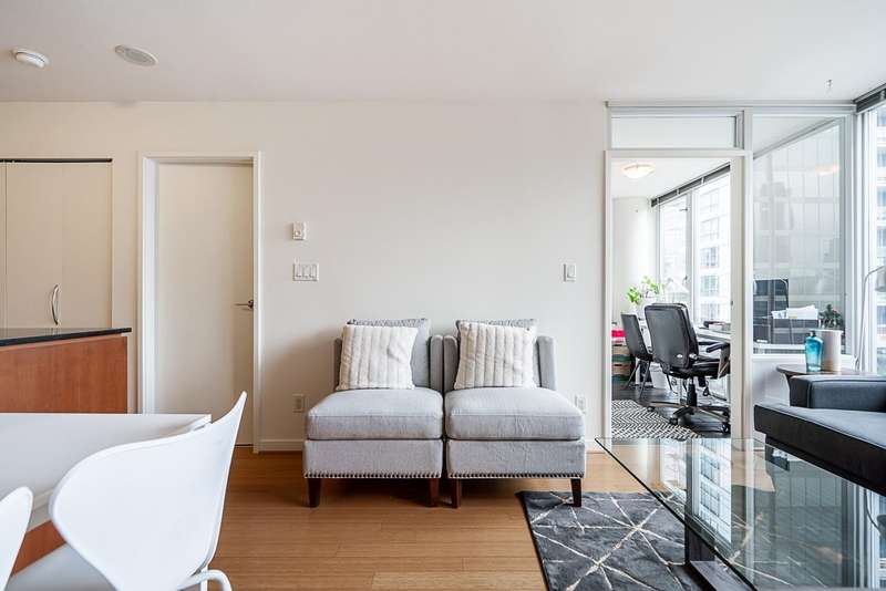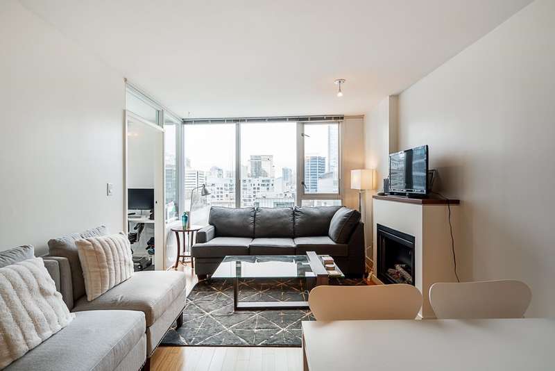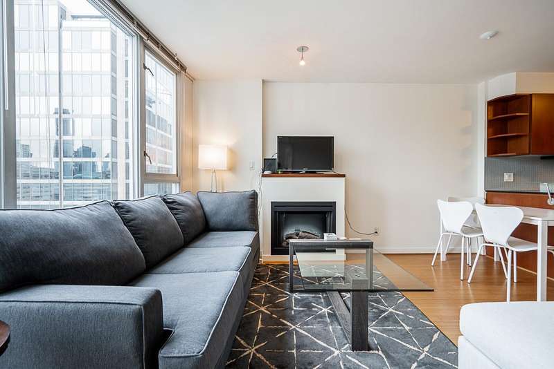 Welcome to the L'Aria, located at the corner of Robson and Seymour in the heart of downtown Vancouver. This property offers breathtaking views of the world-renowned Robson Street and its vibrant highlights. Its prime location provides easy access to shopping boutiques, exceptional restaurants, transportation, and recreational options, all within walking distance. This beautiful one-bedroom + den features an enclosed solarium, perfect for an office or a cozy sitting area with views of downtown Vancouver, along with in-suite laundry. One parking stall is included, and the building offers a gym and bike room. A fantastic investment opportunity!