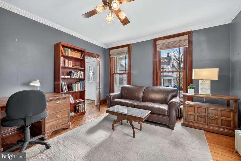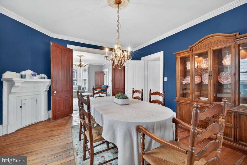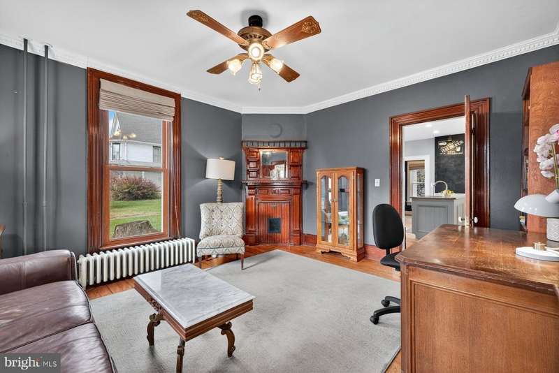 The Historic Shildt House (c.1892) - Timeless Victorian Elegance in Taneytown. Step into a piece of Taneytown history with the Historic Shildt House, originally home to the town's blacksmith, James Shildt - whose craftsmanship and legacy still echo through this remarkable property. This late-Victorian treasure showcases classic architectural details, including a graceful turret, front porch, and ornate millwork that speak to the artistry of its era. Inside, you'll find 4 spacious bedrooms, 9-foot ceilings, and a thoughtful floor plan featuring dual staircases and two fireplaces, blending historic character with modern comfort. The primary suite offers a private bath, while the spacious kitchen impresses with stainless steel appliances and abundant cabinetry and butler pantry - the perfect gathering place for family and friends. Throughout the home, original wood floors and replacement windows create a seamless balance between preservation and practicality. Outdoors, the charm continues with a fenced, landscaped backyard featuring tiered gardens, a two-story barn, and a beautifully restored two-story summer kitchen - now converted into an office or creative studio, complete with a fireplace. Located in the heart of the Taneytown Historic District, the Shildt House is more than a home - it's a living piece of Maryland's history, lovingly maintained and ready for its next chapter.