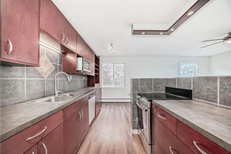 This is YOUR rare opportunity to own a remarkable two bedroom condo with amazing views, and low / stable condo fees in a cozy, well-managed building! Just steps away from parks, shops and local amenities, the almost 750 square feet of bright and inviting living space makes for ample room to live, entertain, and even have a home office. With only 8 units, the condo corp is easily self-managed which keeps the condo fees incredibly low. Most condo buildings have high condo fees due to management companies and elevator maintenance - but not here! The small but responsible condo board of neighbours makes for great communication, friendly governance, and keep this building well-maintained - PLUS have invested for the future by replacing the boiler heating, the windows, siding, and even the roofing! It's in amazing condition! They even have a professional building maintenance contractor that keeps an eye on things to make sure everything stays tip-top. For those who cherish peaceful at-home time, the building is ideal being 18+, AND if you have allergies, it's PERFECT because it's also non-smoking, and dog free! The amazing west-facing TOP FLOOR location makes for stunning views while providing a wonderful sense privacy so you can live life while enjoying the sunset at the end of every day! The bright and clean living space shows evidence of the owner’s love of the property over the years. Touches like new appliances, bidet-toilet combo (with heated seat), USB wall charging plugs, and modern LED lighting add to the functionality of this open and inviting floor plan. The NEST thermostat makes for easy temperature control from your phone, while touches like extra cabinetry make for ample storage. AND the list goes on… like frosted-french doors, under-cabinet lights, rain-head shower, plus custom tile entry and bathroom floors. It's well worth a visit! There are other important things here that you just won't find anywhere else... As there are only two condos per floor, all the units benefit from cross-breezes by having windows on three sides of the building. Plus, for those wintery-feeling nights, the wood-burning fireplace makes for cheery coziness (a hard-to-find feature in condos!). In-unit storage & laundry also ensures that everything you need is conveniently accessible! Heat, water, general upkeep, and building insurance are all already included in the condo fees so your monthly bills can stay low!! Major transit routes are only a block away, parks, tennis and outdoor pathways are within a few minutes’s walk, and the downtown core is a quick 15 minute bike ride (made easier with the bike storage room downstairs). The building’s ample parking is securely located behind the building and is accessed from the front street. Whether you’re looking for an investment property, or a place to call home - don’t miss out on this amazing opportunity for ideal inner city living - these units don’t come up often!
