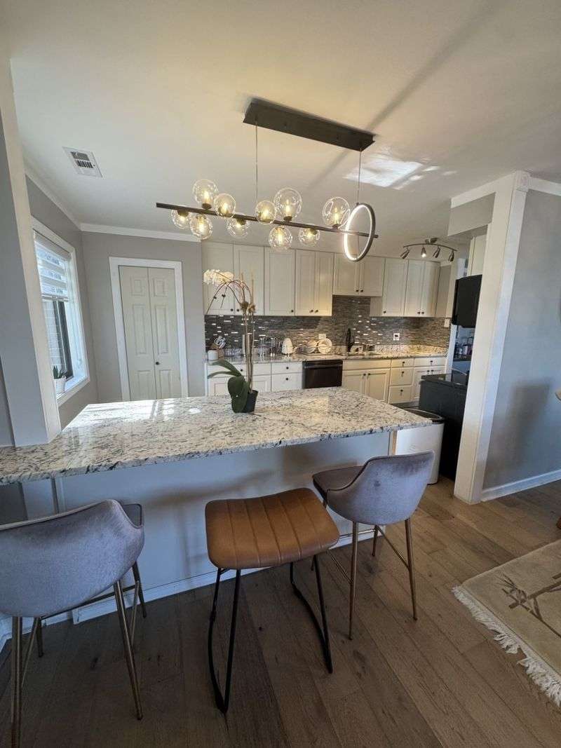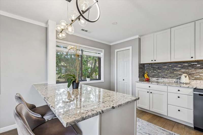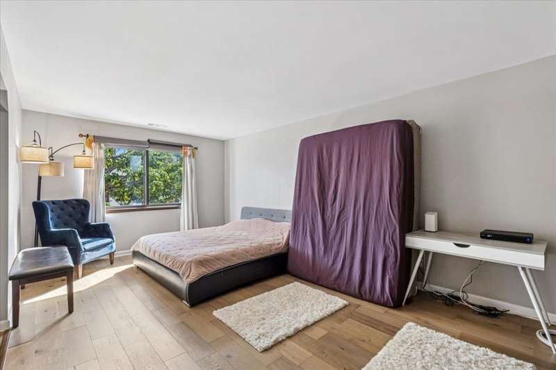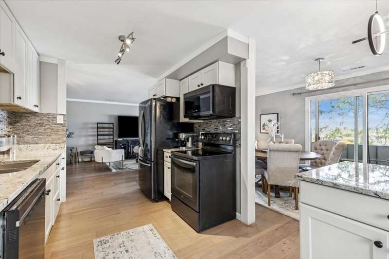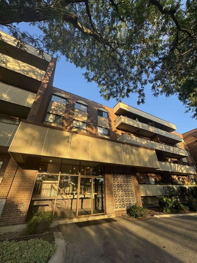 Experience luxury living in this beautifully remodeled 2-bedroom, 2-bath unit in sought-after Gross Point Towers. Spacious, sun-drenched TOP FLOOR & CORNER unit features elegant designer finishes throughout - including gorgeous granite countertops, 36 white shaker cabinets, gorgeous lighting and premium luxury flooring. The living and dining area opens to a huge 24-foot private balcony with sweeping views from two of the best exposures, south and west! The large, eat-in kitchen with window and pantry is both stylish and functional with beautiful island, ideal for any home chef. HUGE primary suite with a generous walk-in closet and en-suite bath. Full amenity elevator building with an outdoor pool, sauna, party room, heated garage parking (space #26), and storage locker (#402). Laundry in building & hook up for private washer/dryer is allowed! Pet-friendly building, ample guest parking and an unbeatable, very walkable location close to stores, grocery, Weber Center and restaurants. Truly move-in ready!