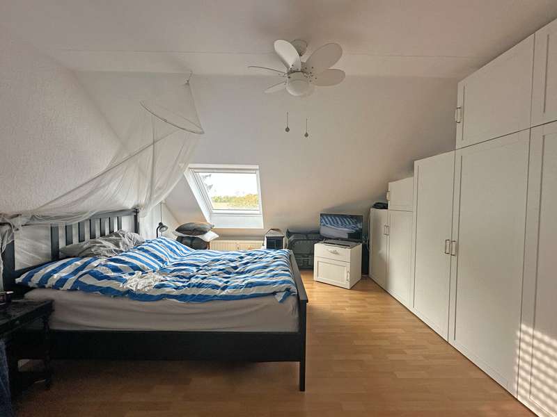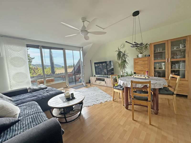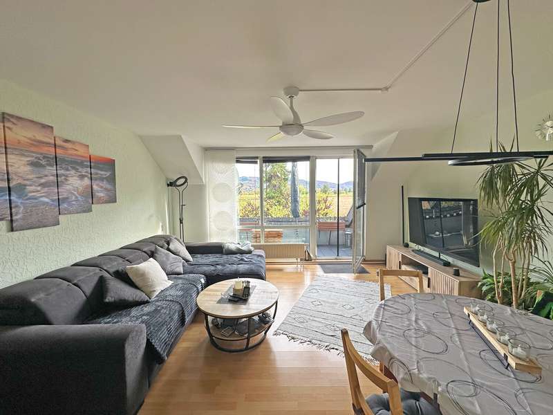 This maisonette apartment in Hirschberg has a living space of approx. 88 m² and was built in 1998. levels creates a harmonious interplay of spacious living and well-structured structured retreat areas. The entrance area is located on the upper floor, from which all rooms on this floor are accessible. The living and dining area impresses with its brightness and direct access to the balcony, which offers a lovely outdoor space. This level is complemented by an open kitchen, a bathroom and a spacious bedroom. The top floor forms the private living area and offers a well thought-out and comfortable distribution of space with an additional bedroom and another bathroom. The apartment features modern elements such as triple glazing and solar shutters, which ensure both energy efficiency and additional living comfort. Tiled and laminate flooring create a pleasant blend of functionality and homeliness. A private parking space is also part of the apartment and provides additional convenience in everyday life. Hirschberg an der Bergstraße is one of the most sought-after residential areas in the region. The municipality offers an ideal mix of living close to nature, good infrastructure and short distances to the surrounding towns. The vineyards and the Odenwald forest also create a high quality of life. With its spacious layout and solid fittings, this maisonette apartment is a property that will retain its value over the long term. Please contact us for a viewing appointment.