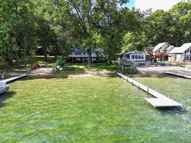 A fabulous private location on a road-end, in the lovely Haley Subdivision, sits this Little Crooked Lakehouse. A beautiful yard front and back with 55 feet of sandy beach frontage with no seawall and a patio lakeside. The home is a walkout, which is perfect for lake living, and includes an upper balcony deck along the entire front with fabulous lake views. Spacious open living both up and down with a dishwasher, pantry and eat-in kitchen. Enjoy the lower level which includes a family room, wet bar and fireplace. There is a large bathroom on each floor and a half-bath attached to the primary bedroom. Two car detached garage. Central air, sewer, underground sprinkler and the pier is included. Great location, great house. With some updating, this could be your dream vacation home. Little Crooked Lake is an all sport lake in the resort area of Sister Lakes, Michigan. The Lake Life is fabulous, but Sister Lakes has much more to offer. Taste the freshest produce from the local produce stands. Sample beers at our new breweries. Take a wine tour. SW Michigan offers 30 different venues. Great golf courses are just around the corner. Winter enjoyment, too, with miles of snowmobile trails and ice fishing. Sister Lakes is less than two hours from Chicago and just over 30 minutes from Notre Dame.