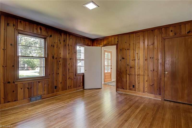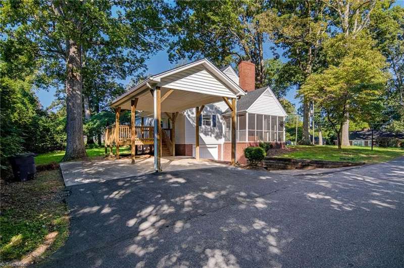 Charming Cape Cod featuring 3 bedrooms and 2 full baths with great curb appeall. This home offers many updates including a new roof and updated systems. Interior highlights include a main level bedroom and bath, 2 bedrooms and a bath upstairs, and a cozy wood-paneled den that can also serve as a home office or bedroom. The property features a large unfinished basement, ideal for storage as well as a back deck overlooking the yard. Conveniently located near shopping, restaurants, and Wake Forest University.