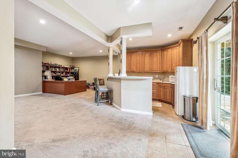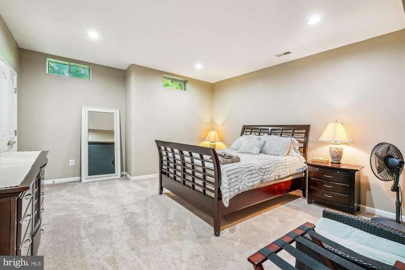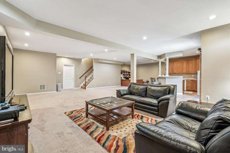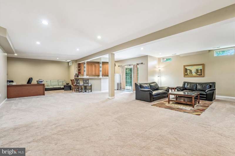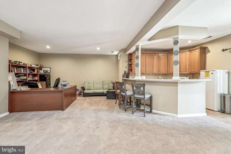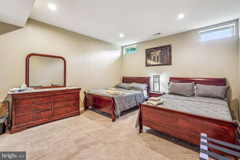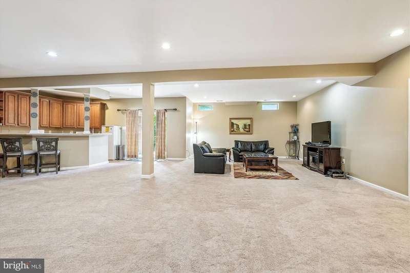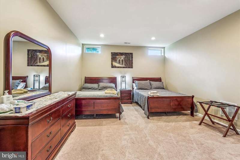 FULLY FURNISHED BASEMENT WITH ALL UTILITIES INCLUDED - 2 bedrooms and a full bathroom in a stunning detached colonial home. Carpeted floors leading to a ceramic-tiled kitchen with breakfast chairs surrounding its open wall. The living room includes a couch, a love seat, and a television, with an entertainment stand. The office area includes a wooden desk, bookshelves, and a filing cabinet. The bedrooms include mattresses with box springs, armoires with mirrors, and lamps. To amplify the atmosphere, recessed lighting is used throughout the basement. Access to the property is via the rear sliding door. Hardscaped patio is included.