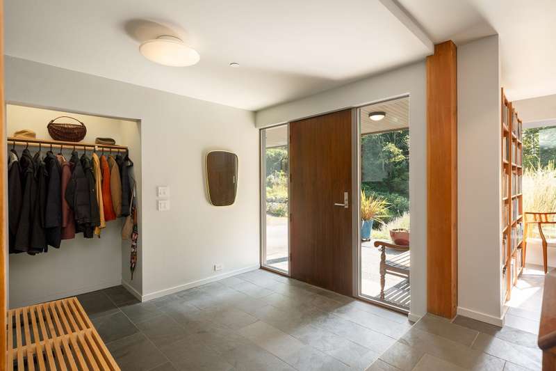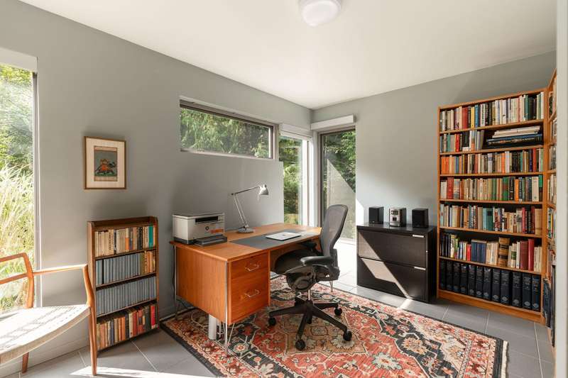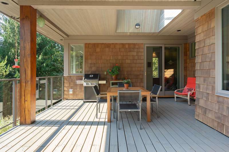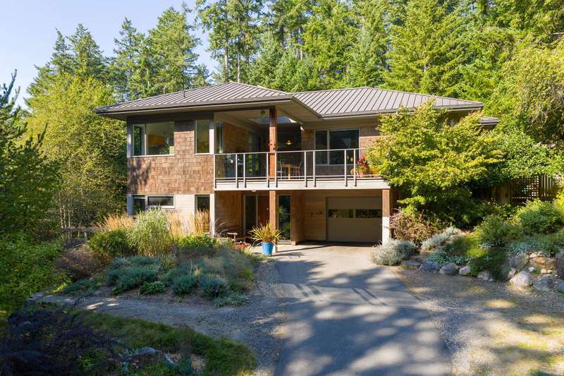 Tucked away among flourishing gardens this exquisite designer home will have you in a zen state of mind from the moment you arrive. Japanese influences are evident with the use of radiant heated stone & tile flooring, clean lines, and purposely placed windows to bring the outside in. The primary bedroom features a spa-like ensuite with limestone shower tiles & counters (with fossils!). The flexible floor plan includes rooms that can repurpose as bedrooms, art studios, or offices. Outdoor spaces include a south-facing deck plus a rear deck with access to the backyard garden where flowering trees & shrubs and a multitude of perennials fill the eye with endless beauty. Ready for a swim? King Edward Bay Beach is at the end of the street, only 60m (approx.) from the end of the driveway.