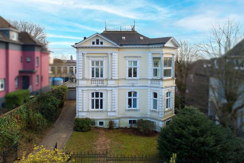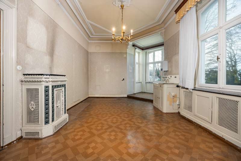 For sale is an exceptional Wilhelminian-style villa built in 1890 on a generous plot of approx. 760 m². With a living space of approx. 262 m² and a total of 10 rooms, this impressive property offers generous space for a variety of uses. The well thought-out room layout and versatile design make the property particularly attractive both as a prestigious home and as a combination of living and working. The possibilities offered by this villa are as varied as its fascinating history. The villa is a detached gem and has been a listed building since 1987, which underlines its historical significance and the preservation of its unique charm. Many of the original details from the Wilhelminian era have been preserved to this day and give the house an incomparable aura. The two-storey building with a plaster façade rests on an almost square floor plan and has an elegantly designed staircase extension at the rear. The imposing bay window on the right-hand corner of the building is particularly eye-catching, creating a fascinating overall picture in harmonious coordination with the ashlar corner pilaster strips and the magnificent, set pilasters. The façade is adorned with elaborately crafted Corinthian columns and the finest stucco ornamentation, predominantly in Renaissance forms. Another highlight is the profiled eaves cornice with dentils and small brackets, which rounds off the architectural beauty of this villa. The villa's hipped roof is crowned by a filigree, wrought-iron lattice framed belvedere, which not only lends the building exclusivity, but also provides a fantastic view over the property and the surrounding area. The green areas of the property extend in front of and behind the house and offer space for individual garden design. Part of the original wrought-iron fence has been preserved and could be integrated into the design to emphasize the historic charm of the property. A double garage on the property also provides contemporary convenience in the parking situation. The interior of the villa impresses with its spaciousness and tasteful room layout. With five bedrooms and two bathrooms, the property offers enough space for a larger family or a combination of living and working spaces. The bright, spacious rooms exude a special elegance, which is further enhanced by the high ceilings and impressive historical details. The villa is in need of renovation, but its solid structural fabric provides an excellent basis for making this historic building shine in new splendor. An inscription on the façade dating back to 1890 bears witness to the building's long history. Contact has already been established with the monument protection authority so that interested parties can be given comprehensive advice. An on-site appointment with the authority will provide an opportunity to clarify any unanswered questions and find out more details about the possibilities for renovation. This property is a rare gem that combines history, charm and enormous potential. It will particularly appeal to lovers of listed properties who appreciate the value of historic architecture and enjoy breathing new life into such a heritage. We cordially invite you to view this villa for yourself and discover the many possibilities that this property offers on site. Make an appointment today and be inspired by this fascinating property!
