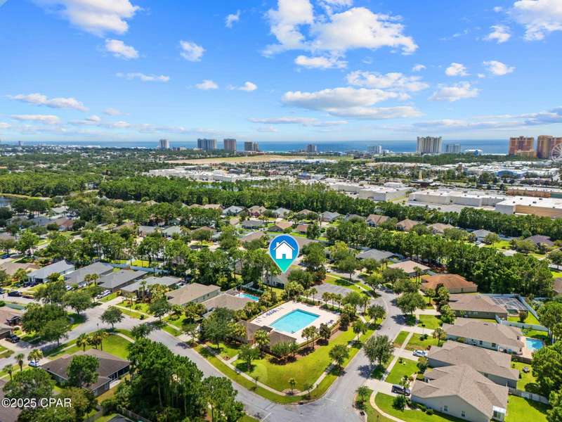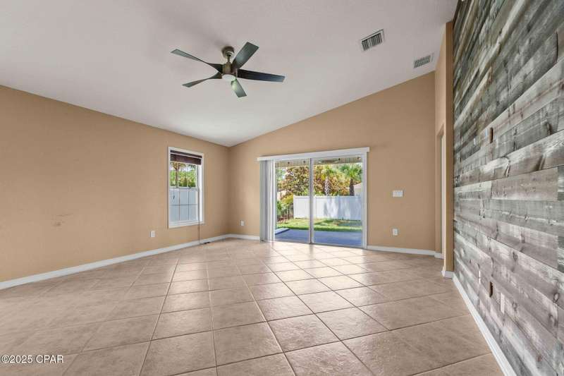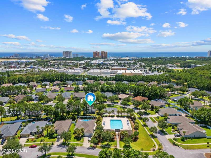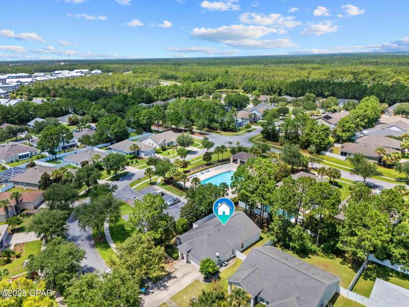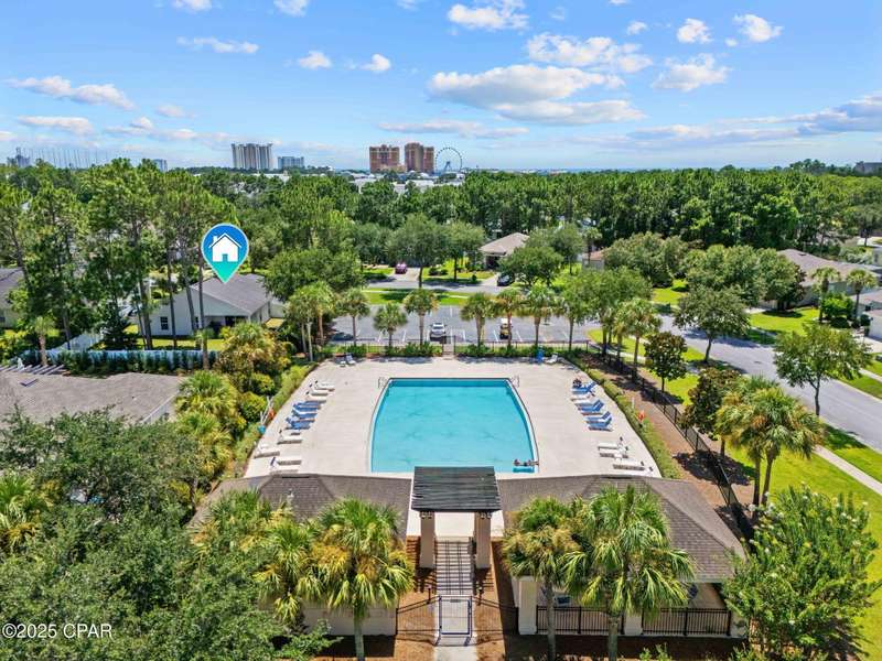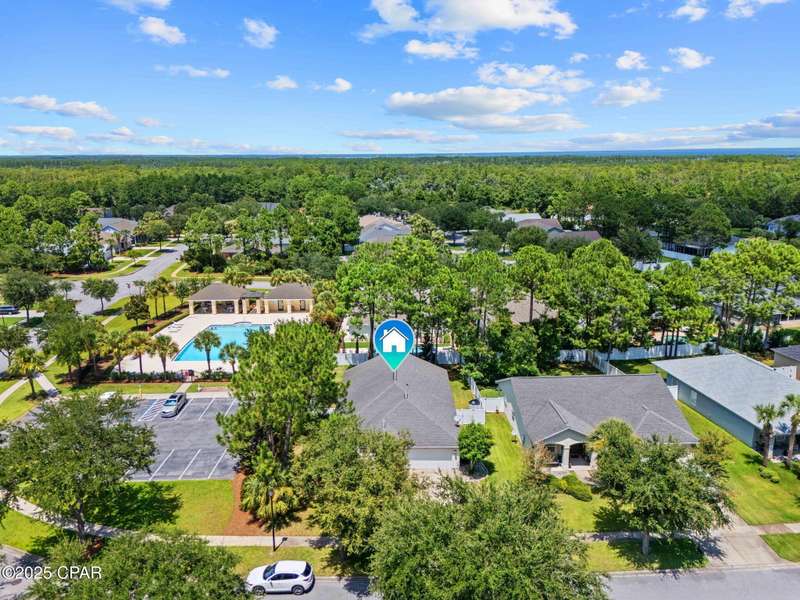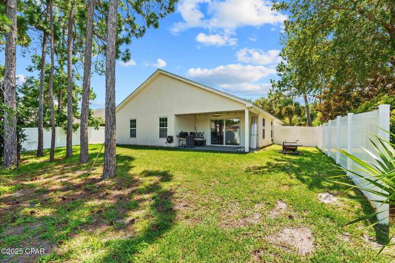Beautiful Home in Palmetto Trace - Prime Location Near Pier Park, Top Golf & the Beach!Welcome to Palmetto Trace, one of Panama City Beach's most sought-after and golf cart-friendly communities! This charming home offers unbeatable convenience -- perfectly situated right next to the community pool with overflow parking, an ideal perk for guests or growing families.Enjoy walking or golf cart access to Pier Park, Top Golf, Frank Brown Park, and some of the area's best shopping, dining, and entertainment. Skip the traffic around Pier Park thanks to the nearby Phillip Griffiths Parkway, offering a quick, low-traffic bypass to all the top spots.This well-maintained home features an open floor plan, a spacious living room with vaulted ceilings, and a fully equipped kitchen with stainless steel appliances and a clear view to the living area. Tile flooring runs throughout the main living areas, with carpet in the bedrooms for added comfort.Additional highlights include:A separate formal dining roomA large master suite with oversized walk-in closetA luxurious master bath with double vanities, garden tub, separate shower, and private water closetA split-bedroom floor plan for added privacyCovered back patio for relaxing or entertainingPalmetto Trace offers a community pool, sidewalk-lined streets, and street lighting -- perfect for evening strolls and a true neighborhood feel.Whether you're looking for a full-time home or a beachside getaway, this location and layout deliver the best of both! Just minutes from the sugar-white sands of the Gulf and all that Panama City Beach has to offer.
