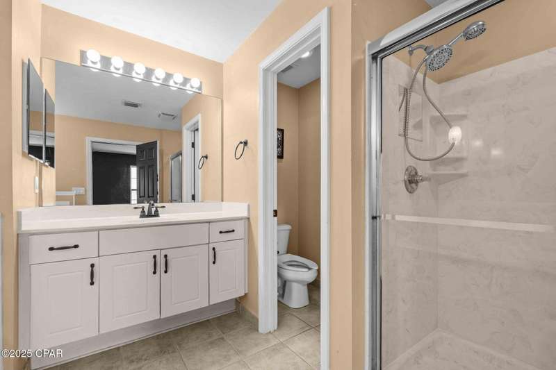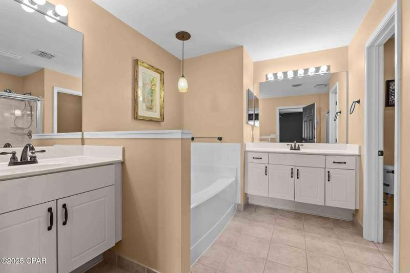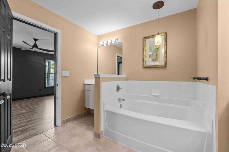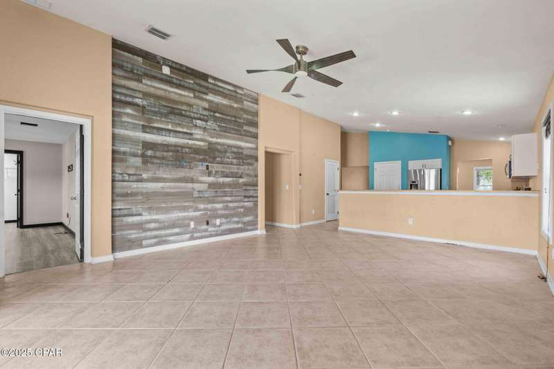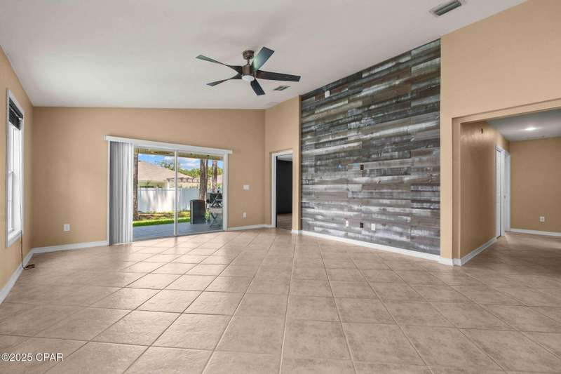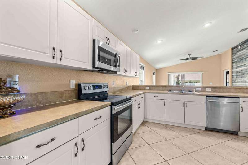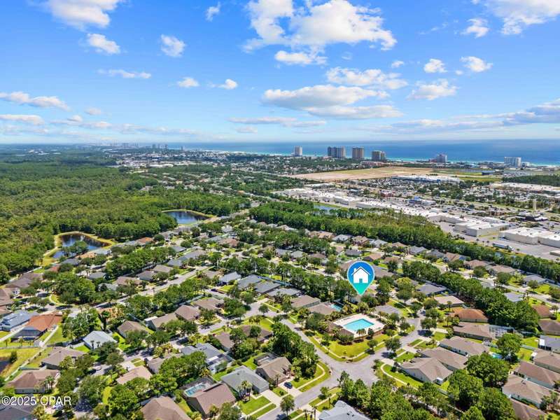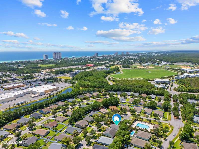 Beautiful Home in Palmetto Trace - Prime Location Near Pier Park, Top Golf & the Beach!Welcome to Palmetto Trace, one of Panama City Beach's most sought-after and golf cart-friendly communities! This charming home offers unbeatable convenience -- perfectly situated right next to the community pool with overflow parking, an ideal perk for guests or growing families.Enjoy walking or golf cart access to Pier Park, Top Golf, Frank Brown Park, and some of the area's best shopping, dining, and entertainment. Skip the traffic around Pier Park thanks to the nearby Phillip Griffiths Parkway, offering a quick, low-traffic bypass to all the top spots.This well-maintained home features an open floor plan, a spacious living room with vaulted ceilings, and a fully equipped kitchen with stainless steel appliances and a clear view to the living area. Tile flooring runs throughout the main living areas, with carpet in the bedrooms for added comfort.Additional highlights include:A separate formal dining roomA large master suite with oversized walk-in closetA luxurious master bath with double vanities, garden tub, separate shower, and private water closetA split-bedroom floor plan for added privacyCovered back patio for relaxing or entertainingPalmetto Trace offers a community pool, sidewalk-lined streets, and street lighting -- perfect for evening strolls and a true neighborhood feel.Whether you're looking for a full-time home or a beachside getaway, this location and layout deliver the best of both! Just minutes from the sugar-white sands of the Gulf and all that Panama City Beach has to offer.