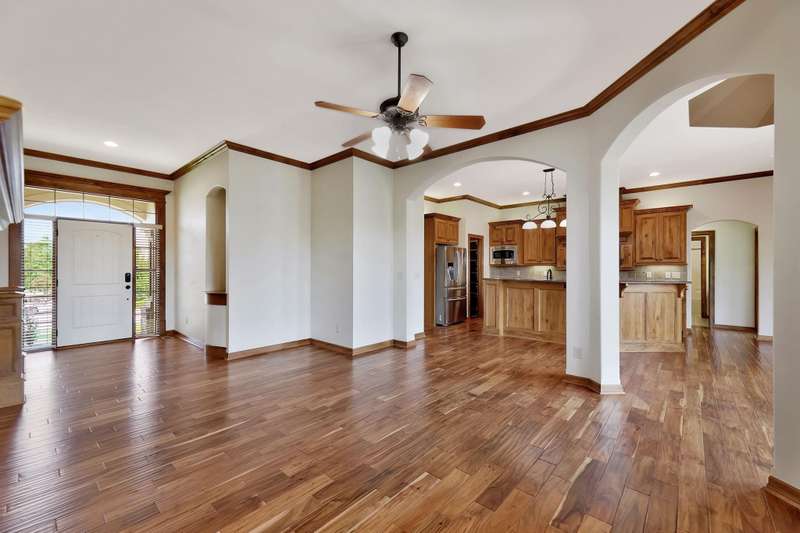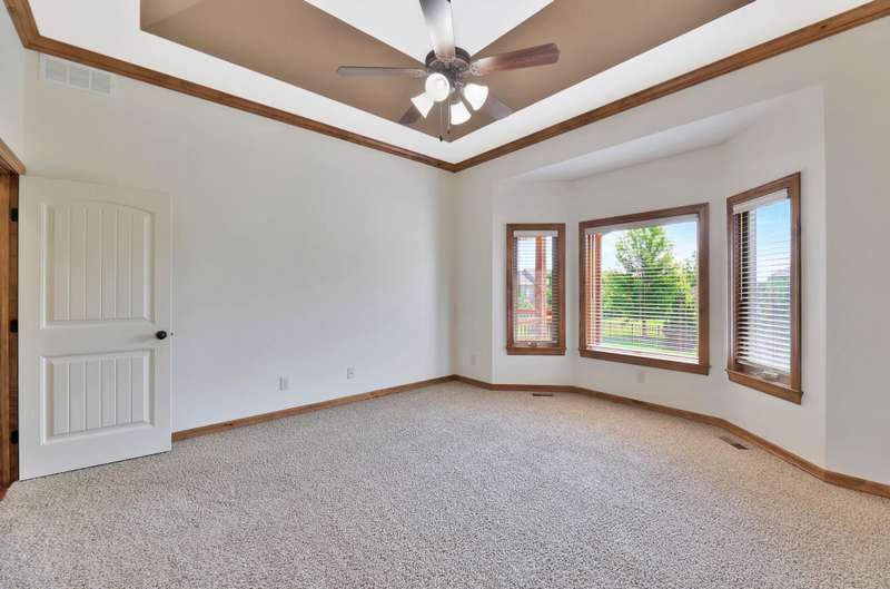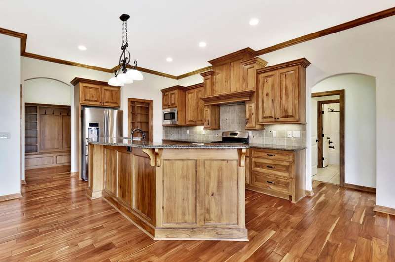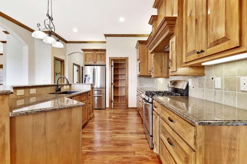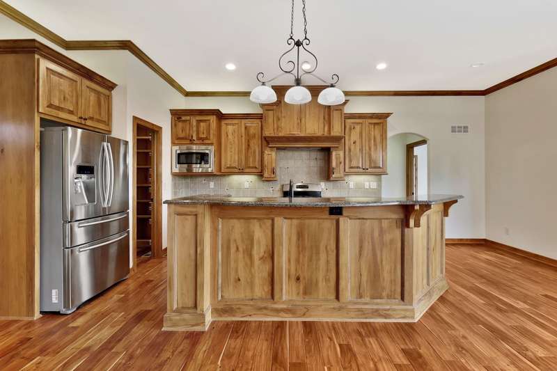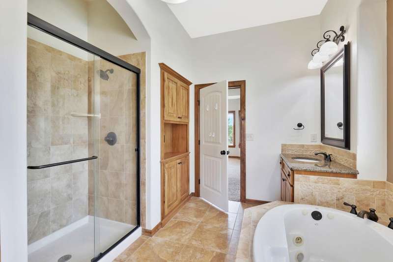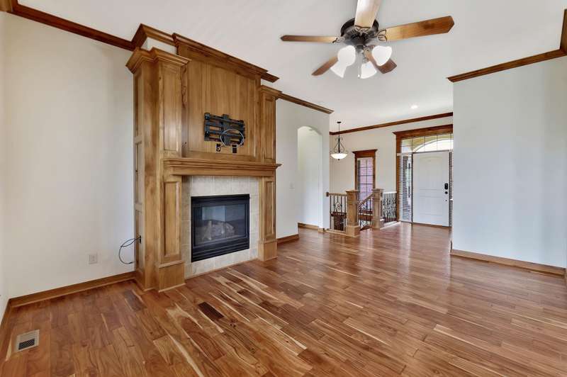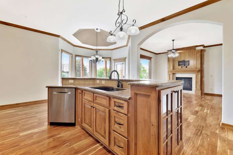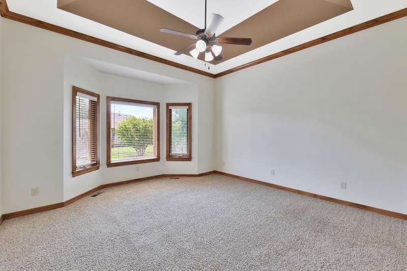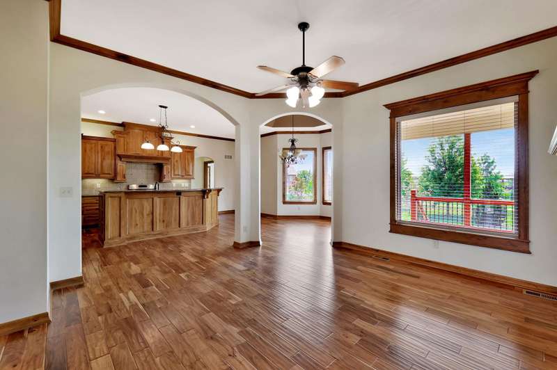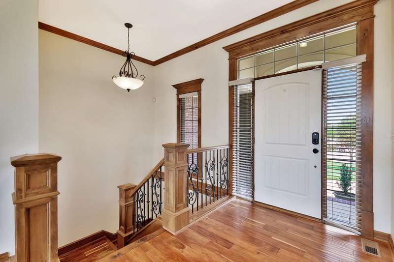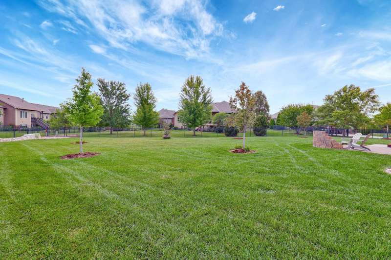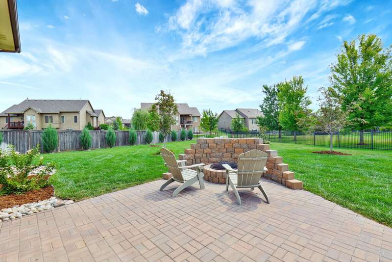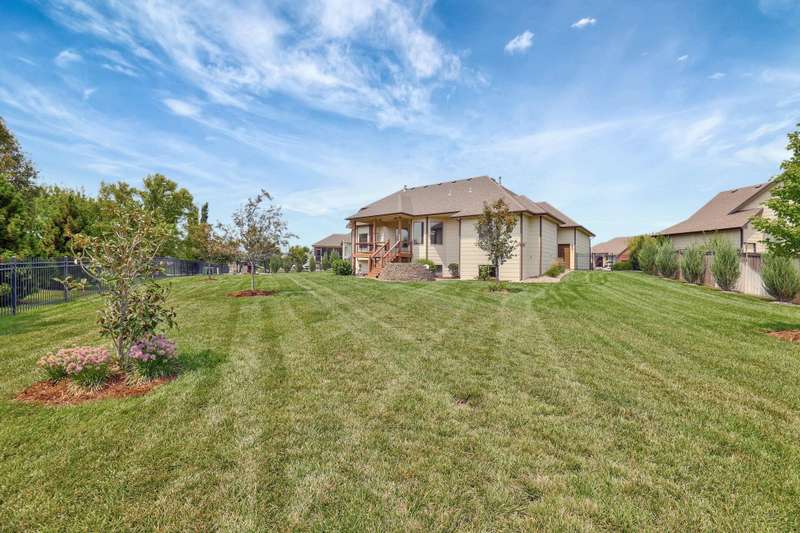 Tucked on a quiet cul-de-sac in desirable Garden Walk, this beautifully maintained McClellan-built home pairs quality construction with timeless appeal. Built in 2011 on a generous 0.39-acre lot, it offers an East-facing backyard with room to roam and a striking brick-and-stone exterior that sets the tone from the curb. Step inside to find rich hardwood floors flowing through the main living areas, crisp walls, soaring ceilings trimmed with crown molding, and thoughtful details throughout. Windows spanning the back of the home soak the living spaces with natural light. The open kitchen is as functional as it is inviting, featuring granite countertops, a gas range, under-cabinet lighting, walk-in pantry, and a large island with seatingperfect for morning coffee or casual gatherings. Two fireplacesone on each levelcreate warm focal points, and a convenient drop zone just inside the garage entry keeps everyday essentials neatly in place. The split-bedroom layout ensures privacy, and the spacious primary suite feels like a retreat with its coffered ceiling, dual vanities, jetted tub, separate shower, private water closet, and oversized walk-in closet. Entertain with ease in the walk-out basement complete with a generous rec/family room, pretty wet bar, two additional bedrooms, full bath, and ample storage. From the covered deck to the brick patio with a built-in fire pit, the backyard is ideal for both relaxing and entertaining. Mature landscaping and a full sprinkler system with an irrigation well keep the lawn lush and inviting. Located in the award-winning Andover School District, this home also benefits from lower Sedgwick County taxes. Recent updatesincluding a new roof in 2019, HVAC system in 2020, and water heater in June 2025offer peace of mind, while fresh interior paint creates a blank canvas ready for your personal style. Don't miss this pristine home in a quiet, established neighborhood.
