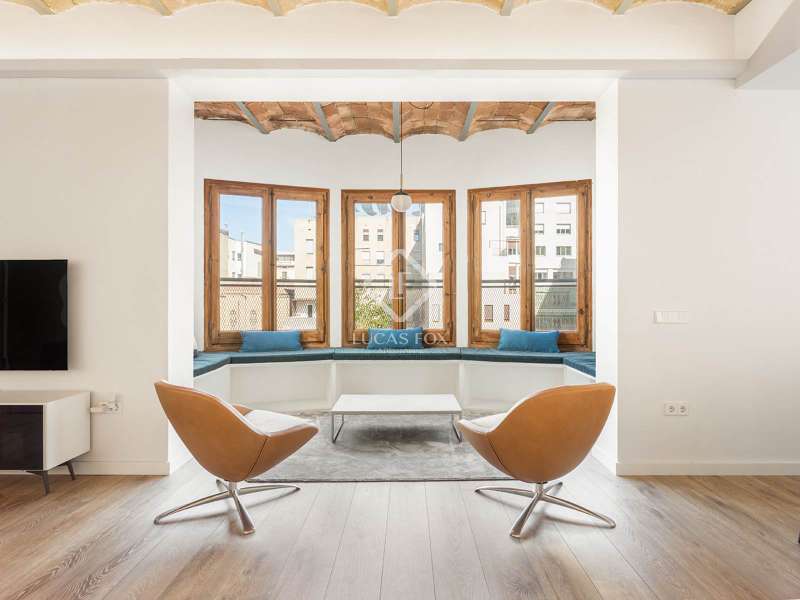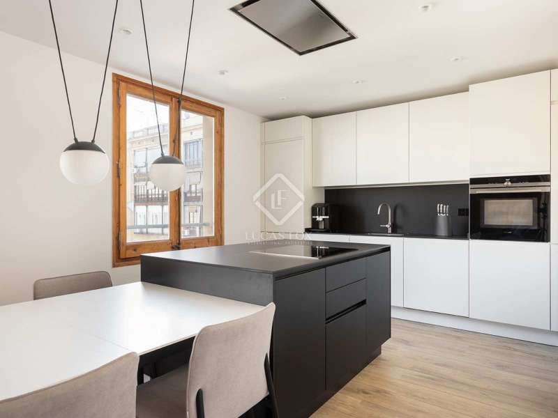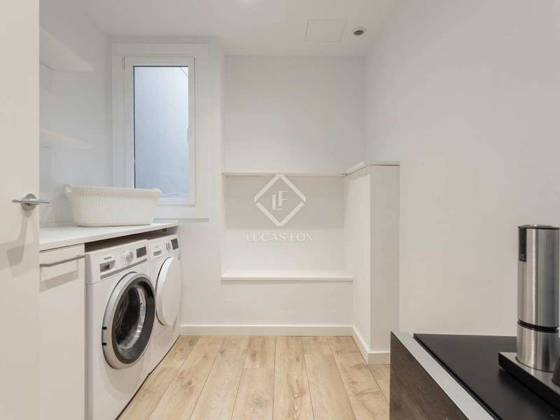 A entrance hall welcomes us to the property, which divides the day area . The day area consists of a large, bright dining room that leads to a perfectly integrated Open kitchen , creating a cozy and contemporary atmosphere. The high-quality finishes can be seen in every corner of this property, since the Catalan vault is preserved, which gives the property a special charm. The night area has three bedrooms: one en suite with a private bathroom and two doubles with a shared bathroom . All of them have built-in wardrobes and television connection. The property has been renovated with high quality finishes, such as threaded lighting, wooden floors and forced ventilation in the bathrooms and utility room to prevent humidity. Its interior design, high-end finishes and location make this property an exceptional option for those looking for a charming property in a privileged area of Barcelona.