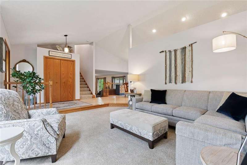 Stunning Updated Home Just Steps from Lake Waconia. Welcome to 1378 Dunsmore Drive, a beautifully updated RARE GEM offering TRUE main level living in sought-after Sugarbush neighborhood! This modified two story offers expansive space w/modern updates, new carpet/paint and a lush, private backyard w/flower gardens making it a true oasis including maintenance free deck(14x14) plus back patio(15x13). Spacious Main-Level Primary or flex room ideal for multi-purpose use or single-level living, paired w/main-floor laundry for ultimate convenience and easy access to the rest of the home. Gourmet kitchen recently updated w/granite countertops, stainless steel appliances, and stylish finishes. 3 additional bedrooms upstairs. Second primary bedroom suite in upper level makes this home unique. Main floor is light-filled living areas w/seamless flow, perfect for entertaining. Buyers will appreciate the peaceful retreat w/mature landscaping, maintenance-free deck, and patio for outdoor relaxation. Oversized 3-Car Garage (32x24) w/plenty of space for vehicles, toys, and storage. This home truly lives like a rambler, but with added space above! Don’t miss your chance to own a fully updated home just minutes from lake access, parks, trails, schools, and charming downtown Waconia shops and dining.