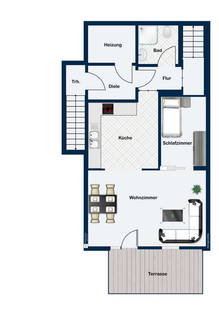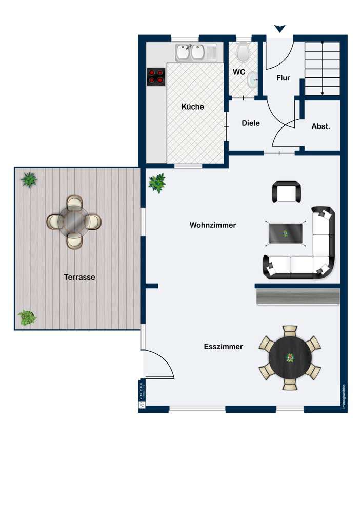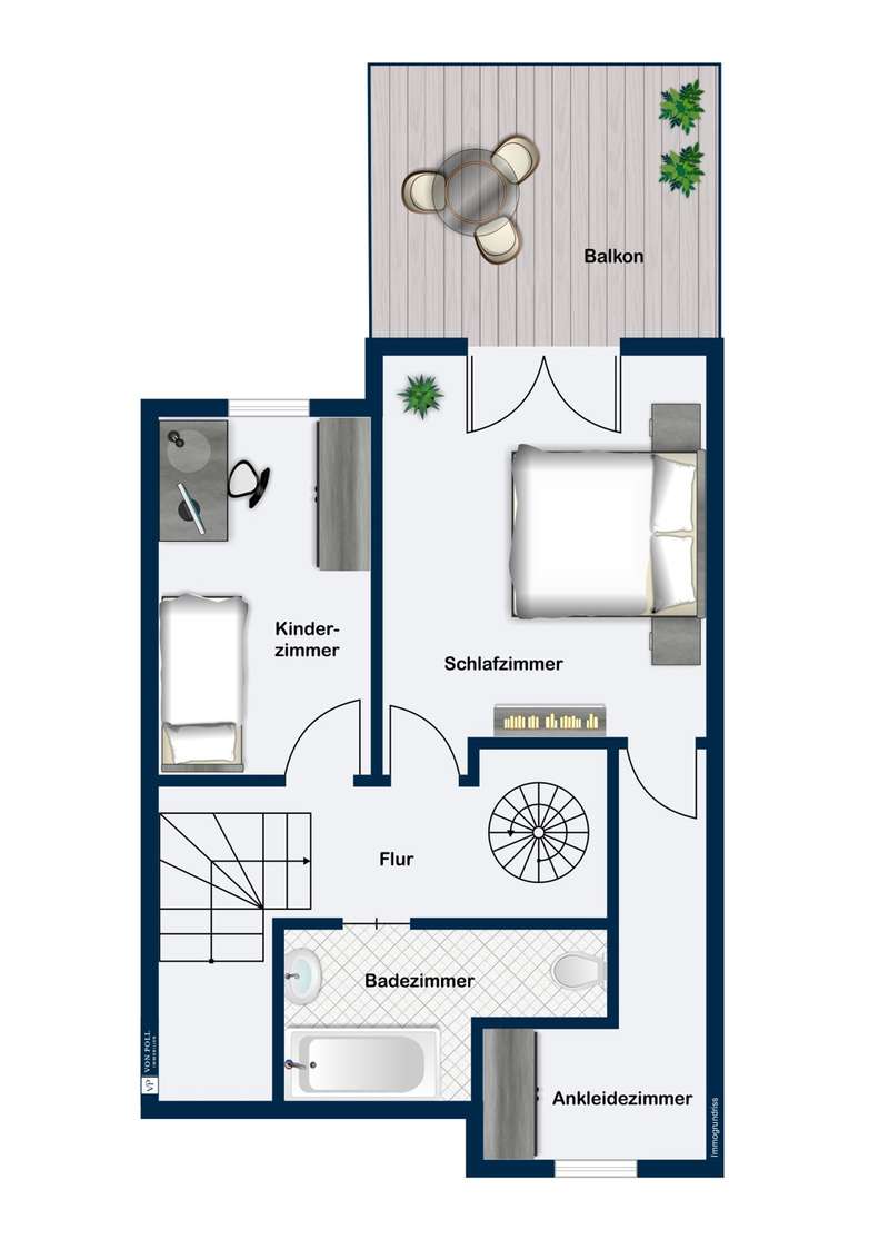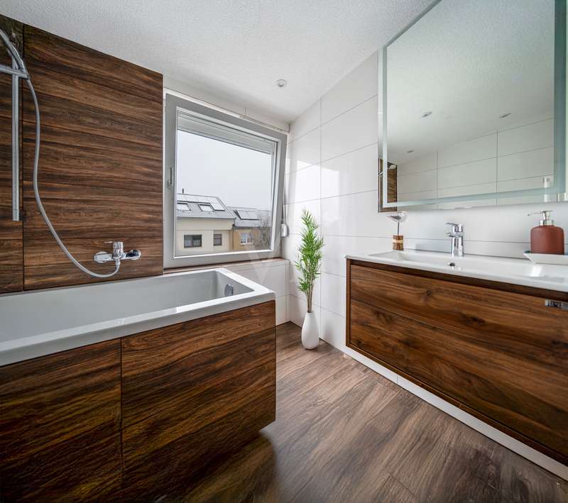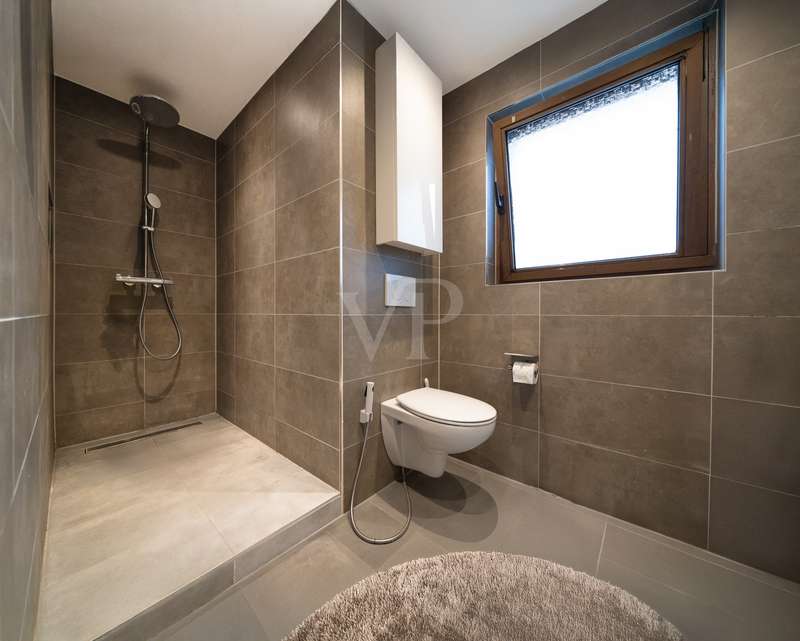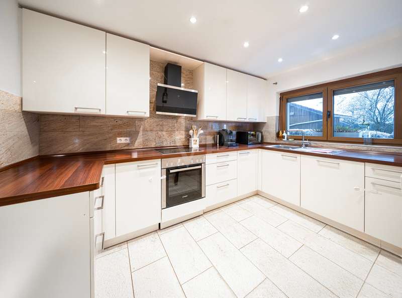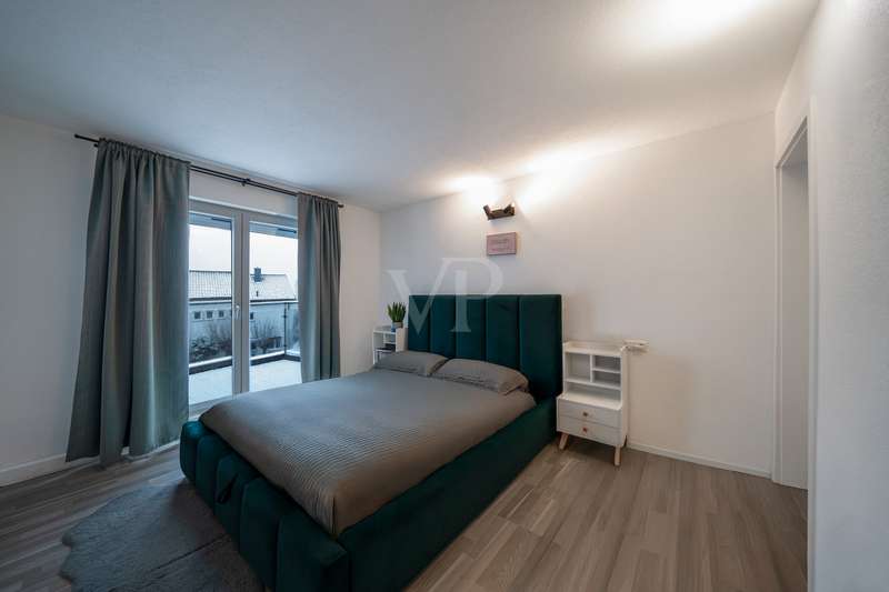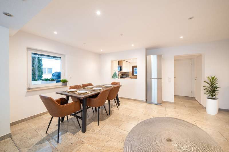 End terraced house with large garden and granny apartment This end terraced house offers many possibilities for large families and would also be suitable as a multi-generational home, as there is a granny apartment in the basement with a separate entrance from the side of the house. On the first floor you will find a large living room with adjoining open dining area, the kitchen, the guest WC and a small storage room. From the living room you can access the terrace, which is surrounded by a large garden with plenty of space for your children. In front of it you will find the four parking spaces in addition to the garage. Next you reach the upper floor with the master bedroom, two extra children's or guest bedrooms and a daylight bathroom with shower. The top floor was converted in 2022 and offers two further bedrooms with en-suite bathrooms. In the basement you will find the granny apartment with underfloor heating, which you enter through a separate entrance, with a living room, additional bedroom and a separate kitchen and bathroom. The windows allow plenty of light into the apartment. The furnishings of the house are as good as new due to the core renovation in 2011, during which a solar system for hot water was installed. Granite tiles with underfloor heating were laid on the first floor and the two apartments are each equipped with a fitted kitchen.