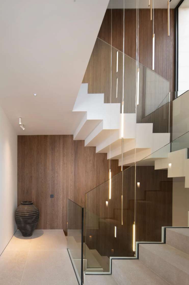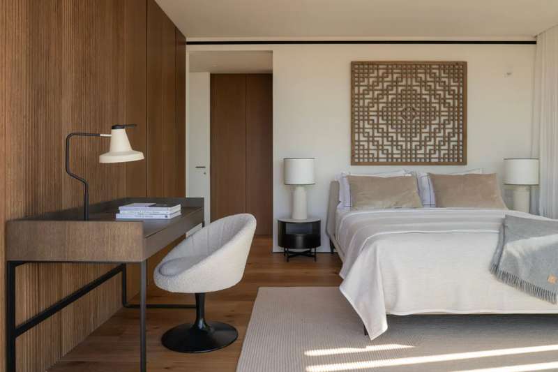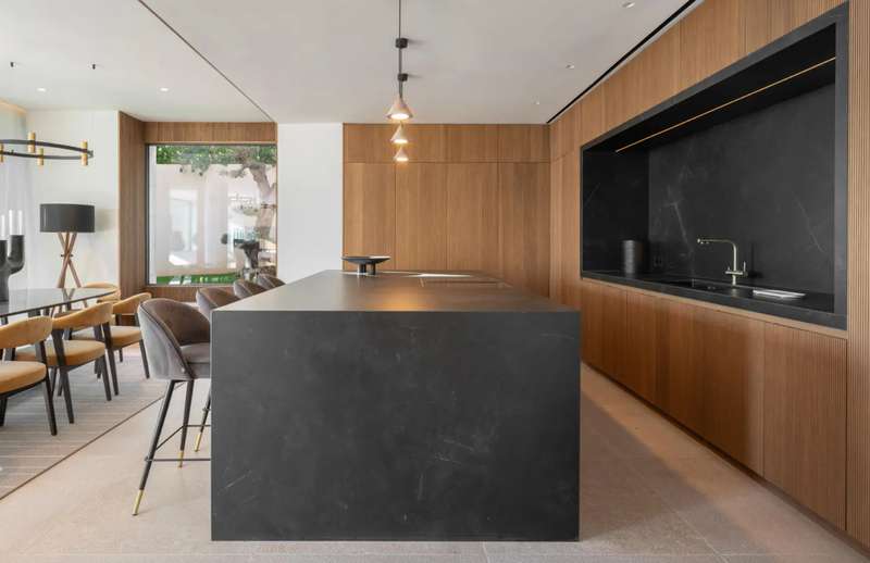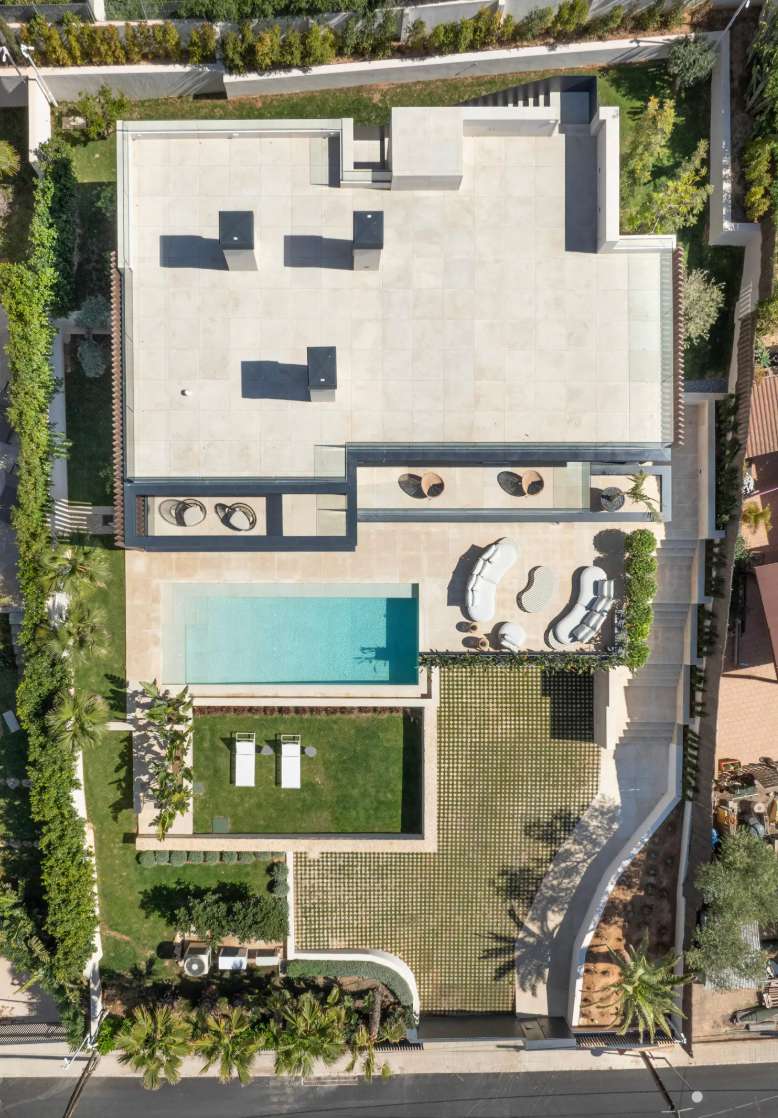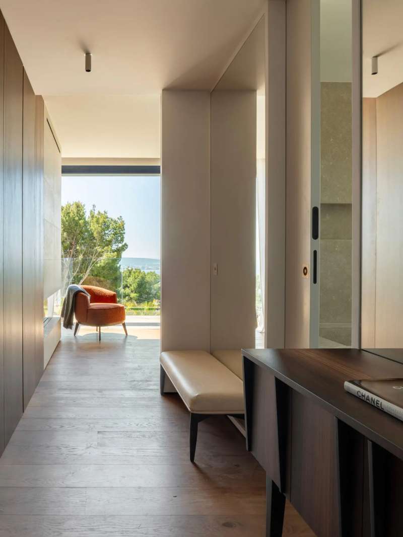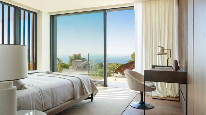 Experience elevated Mediterranean living in this newly constructed luxury villa, boasting panoramic sea views stretching from Palma to Palmanova. Located in the prestigious residential enclave of Portals Nous, this property seamlessly blends sophisticated design with exceptional comfort, ideal for year-round living or as a refined second home. Upon entry, the villa welcomes you with an expansive open-plan layout, featuring a designer kitchen with a large island, elegant dining area, and spacious living room. Floor-to-ceiling windows invite natural light and provide direct access to covered and open terraces, perfect for entertaining or relaxing beside the saltwater pool. A striking double-sided fireplace creates a warm ambiance for both the interior living space and the outdoor dining terrace. Upstairs, four generous bedroom suites include a luxurious master with its own fireplace. Three bedrooms enjoy sweeping sea views and open onto private terraces. The lower level offers secure g