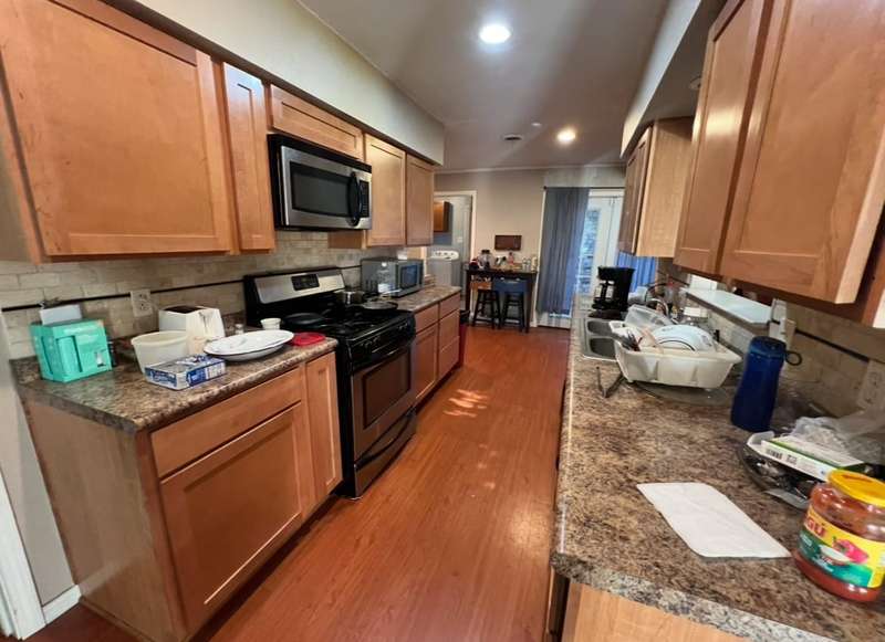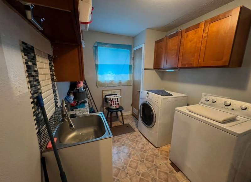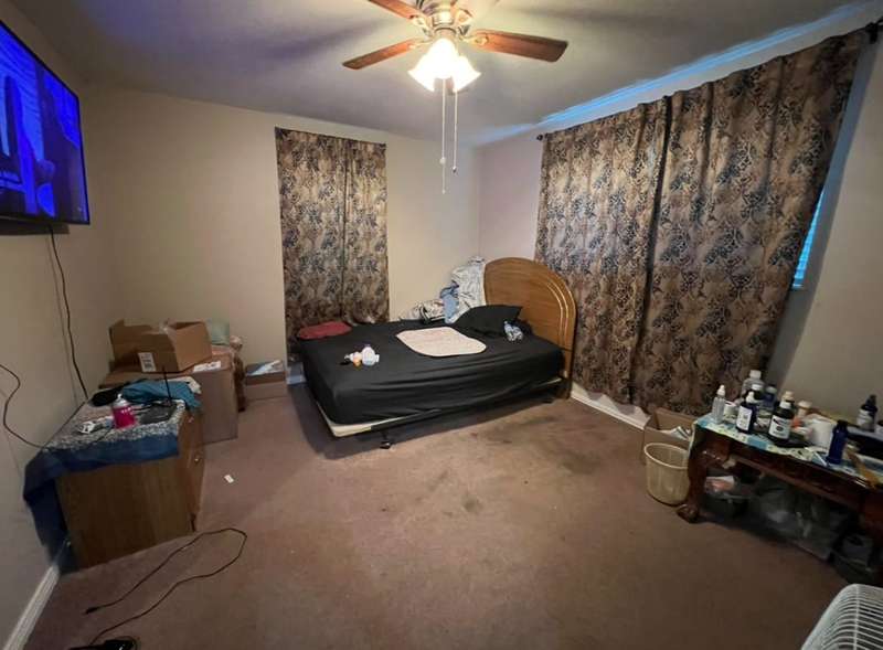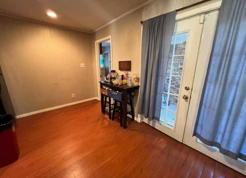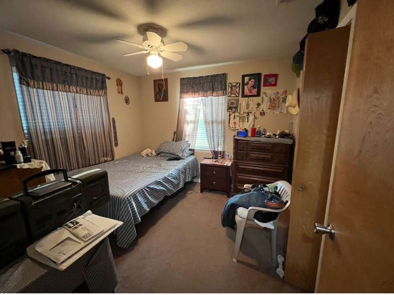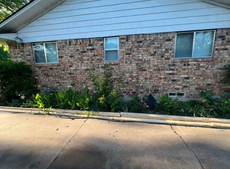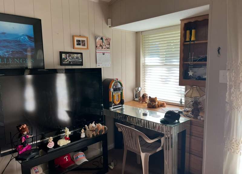 INVESTORS & HANDY PEOPLE: Spacious living area featuring vaulted ceilings, wood beam across, built-in desk and woodburning fireplace. Galley kitchen features a serving window into living area and includes stainless-steel gas stove, built-in microwave oven and dishwasher. Split bedroom layout. Primary bedroom has a walk-in closet, separate vanity area, linen closet, and ensuite ADA-friendly primary bathroom. Secondary bedroom comes with 2 closets. From the living area open the double French doors and step into a covered patio leading to your huge back yard.Laundry room has space for full-size washer & dryer and includes utility sink. Storage shed in back yard. You'll find plenty of parking for your cars and toys with the long driveway curving into the 2-car garage. Gorgeous curb appeal with mature trees and beautiful flower beds in front and side. Enjoy your morning coffee or tea in your front porch.The roof and foundation will need repair. Sold as-is. No repairs by sellers. No blind offers.