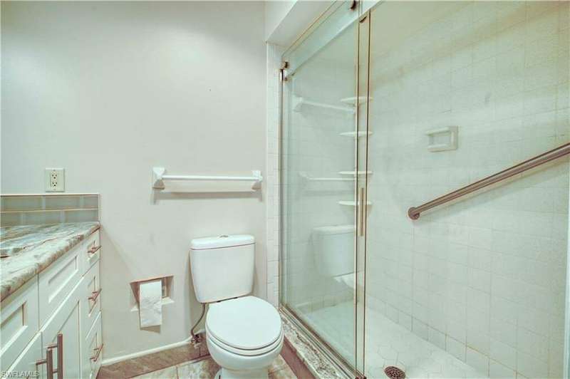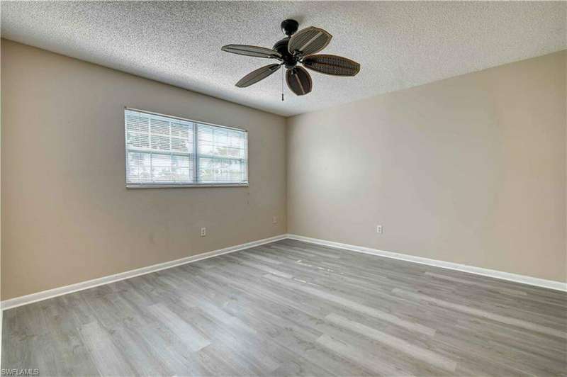 BEST VALUE IN MYERLEE. Completely updated 2BR/2Ba villa with 1-car garage and golf course view in the quiet 55+ Golfside East Condo community of Myerlee. Kitchen is a gem with modern cannister lighting, wooden cabinets and luxury-level granite countertops. The clumsy view-stifling pass-thru common in so many Myerlee villas has been completely eliminated, replaced by a contemporary flat breakfast bar with tear-drop lighting. Tons of cabinets. Lazy Susan storage in corner cabinet. Garbage and recycle compartments. Stainless appliances. Ceramic-top stove. Luxury vinyl plank-patterned flooring throughout the living area. Lovely lighting thru. Good separation between dining and sitting areas, but they flow together comfortably. Split floor plan. Primary bedroom is large. Can easily accommodate a king size bedroom set. 2 closets. Guest room also has large closet. Both bathrooms updated with spacious cabinets, granite tops and tile backsplash. Impact glass provides storm protection. Cozy sunroom has great view of the golf course, but it is shaded by a lovely mature tree. Laundry in garage with laundry tub and shelving for extra storage. Newer roof. Short distance to Golfside East Clubhouse with library, pool, hot tub and shuffleboard. Charming executive golf course is open to public, pay-as-you-play with a pub style restaurant. Lee Hospital less than 5 minutes and wide selection of doctor specialties close by. Easy access to a variety of beautiful beaches and a wide range of restaurants. Golfers can enjoy the nearby Myerlee Country Club and everyone can enjoy the pub/restaurant. Short trip to either the Twins or RedSox stadiums, Lakes Park and the SWFL International Airport. Easy access to Ft. Myers Beach, Sanibel or nearby and often overlooked Bunch Beach. Modest fees include water, flood and property insurance, repairs, exterior and interior pest control and lawn and land maintenance.