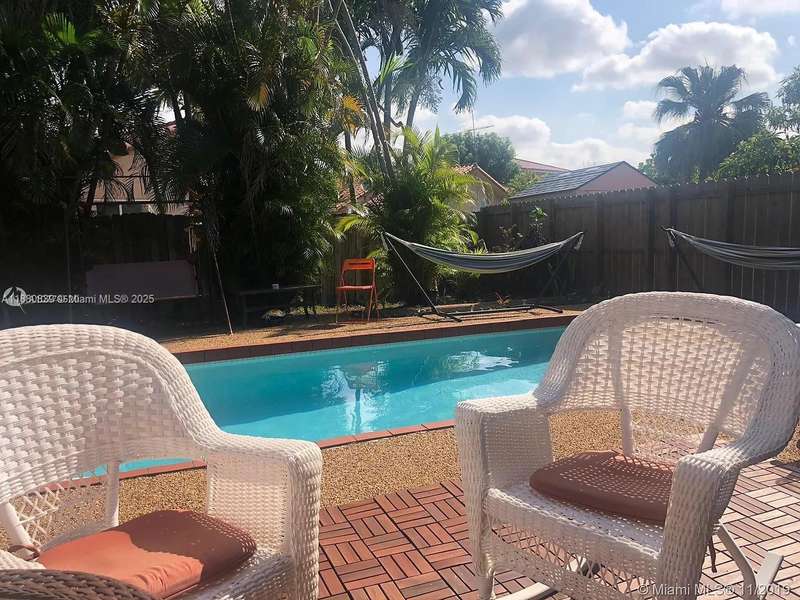 Your private, tropically landscaped pool oasis awaits You for immediate occupancy! The high volume ceilings covered with impressive wood beams, surrounded by huge glass fronts, will make You feel right at home. This one of a kind, over 1,800 square feet spacious home with 2 master bedrooms plus a den/office is tucked away in a secluded cul-de-sac and provides a safe haven for Your children. The breathtaking home features a 500 sq ft sunken living room, a huge kitchen with stainless steal appliances, separare laundry room, 3 walk-in closets, lots of storage space, shutters and a downstairs guest 1/2 bath. There is still more: The community amenities include two more pools, tennis courts and a children's playground! Easy to show use show assist
