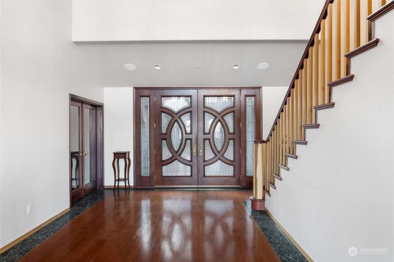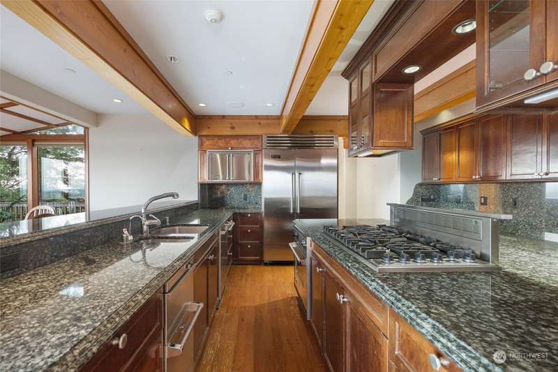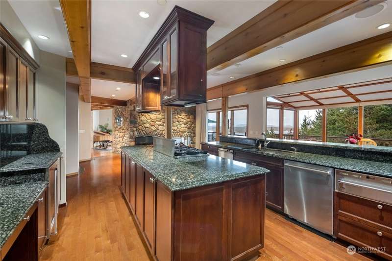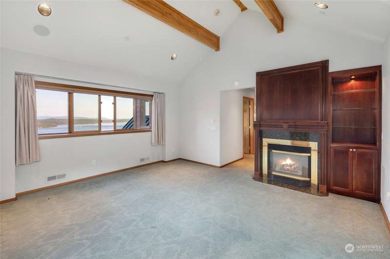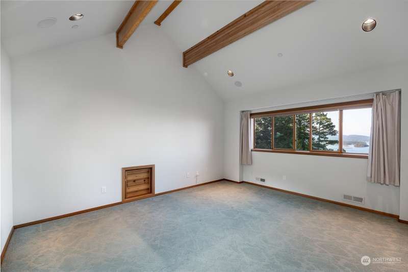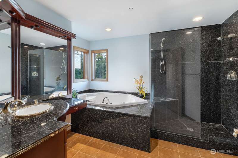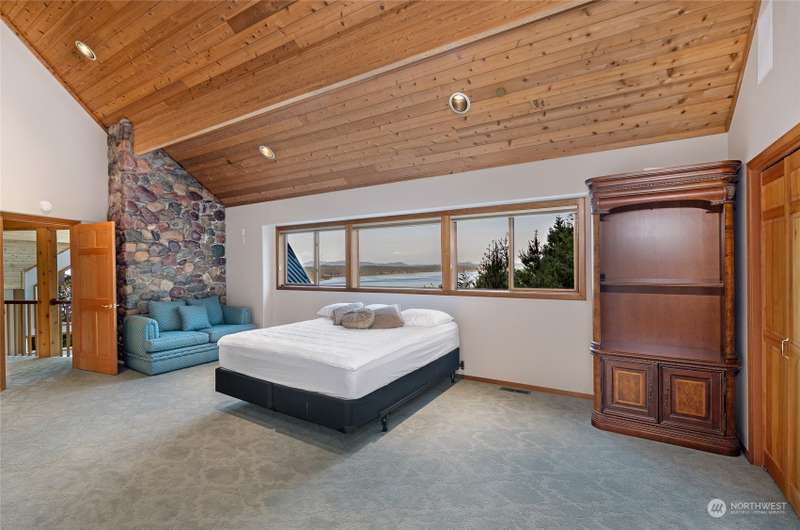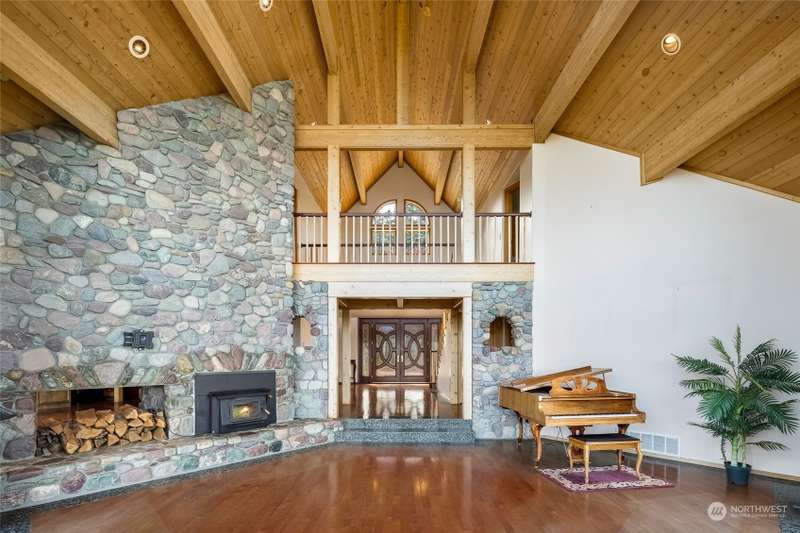 Experience a remarkable Northwest contemporary home with stunning views across the San Juan Channel to multiple islands...channels and bays...as well as Mt. Baker, and much of the Cascade Range. This 3975sf property boasts a grand foyer...stately office...living room with a 16ft vertical island fieldstone fireplace...dining area...and a gourmet kitchen. Two primary bedrooms...one on each level, offer privacy and comfort. Enjoy additional features like a large theater...sauna...metal roof...solar...water catchment...and ample dry storage beneath the home. This 4.48-acre property...with its gated entry...a bricked circular driveway...walking trails...enclosed garden...is truly a 'must-see' gem. Listed for $600K below assessed value.