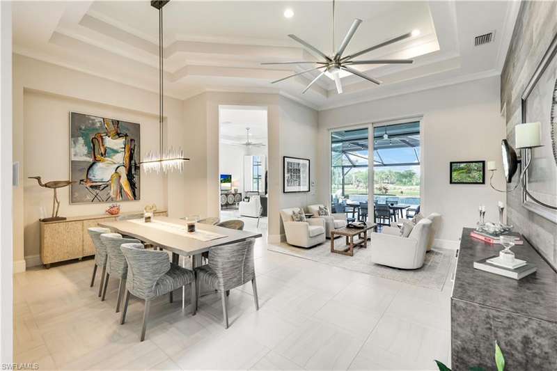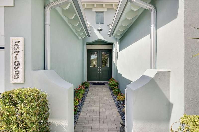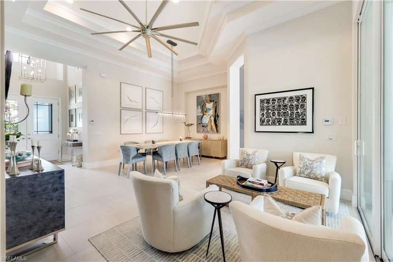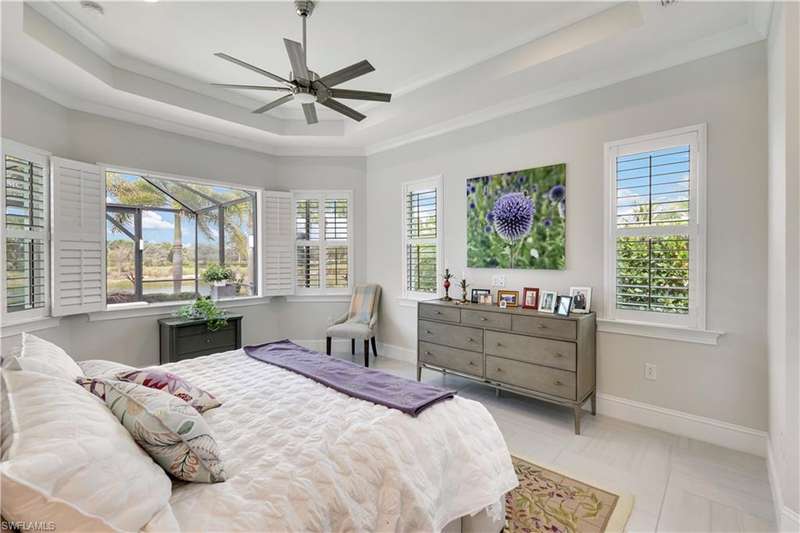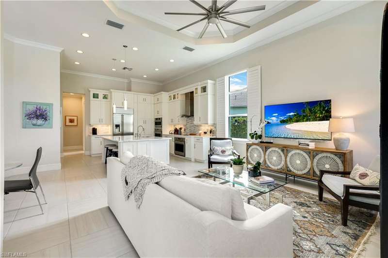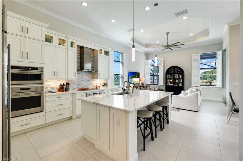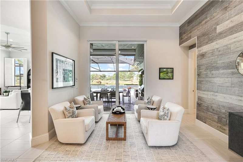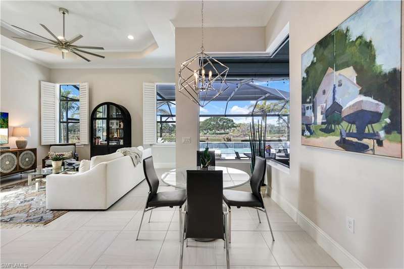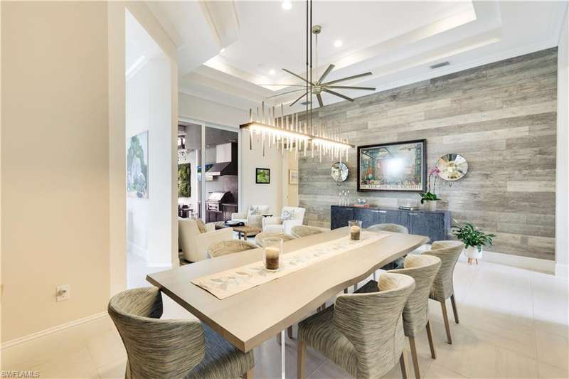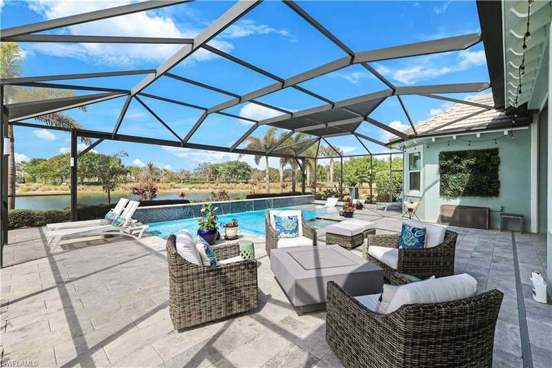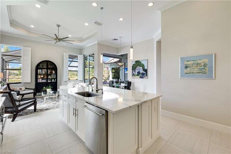 Welcome to your dream home, the Jacaranda floor plan in the Isles of Collier Preserve, now reimagined with an open floor plan for modern living. This exquisite three-bedroom plus den residence boasts three en-suite bathrooms and one powder room, seamlessly blending contemporary style with unparalleled comfort. Step outside to your private outdoor screened-in oasis. The western-facing lanai is perfect for viewing exceptional sunsets. Looking south, you have a long unobstructed view of the waterway. The oasis is complete with an outdoor kitchen, pool, and spa ideal for relaxation and entertaining while enjoying breathtaking sunsets. Nestled on a private cul-de-sac with a pie-shaped lot spanning .37 acres, this home exudes elegance. The expansive open layout connects the living room, dining area, and gourmet kitchen, creating an inviting space filled with abundant natural light from large windows. The gourmet kitchen features state-of-the-art appliances, quartz countertops, and an overs