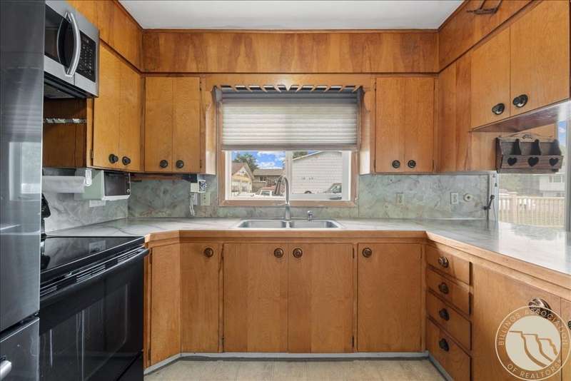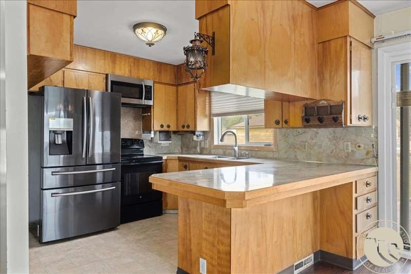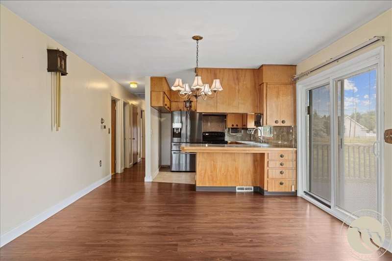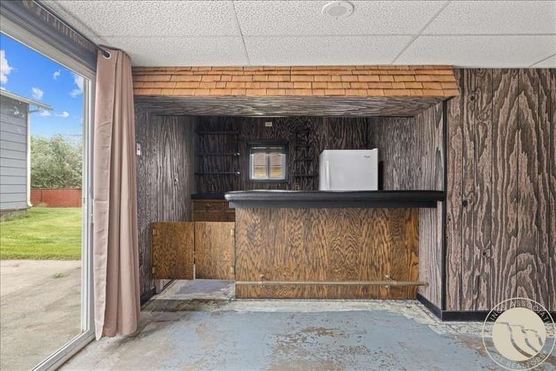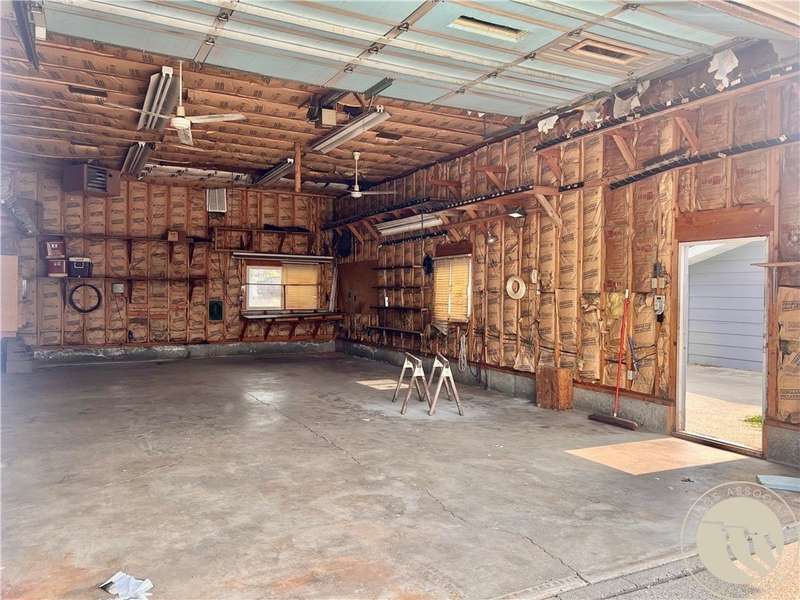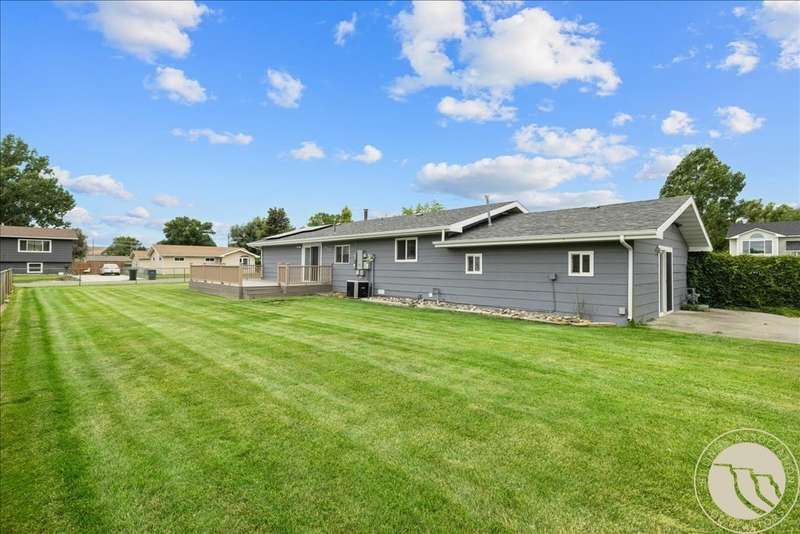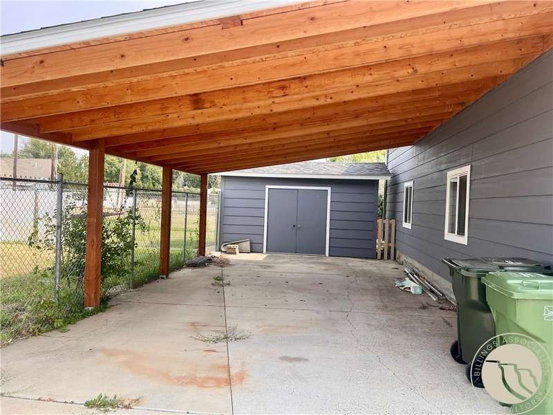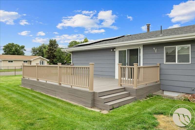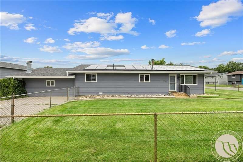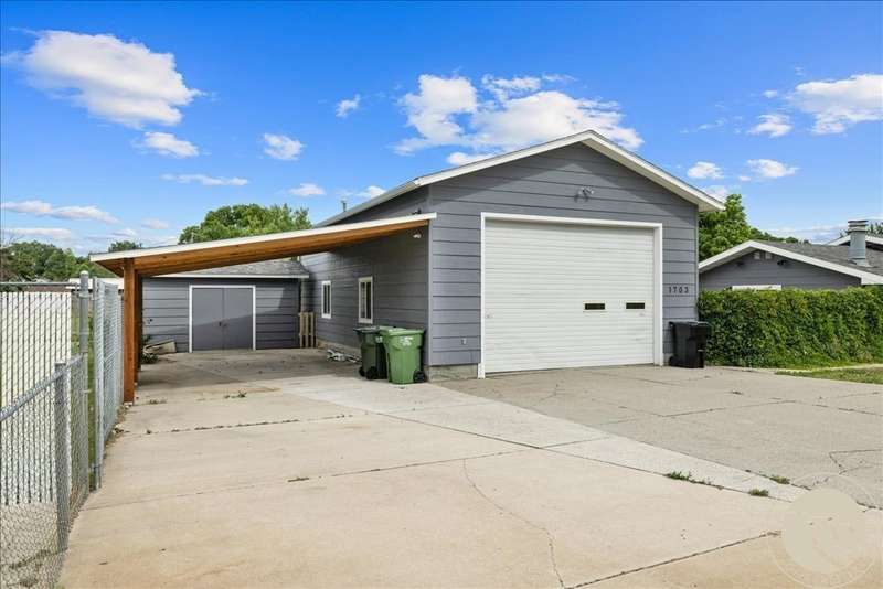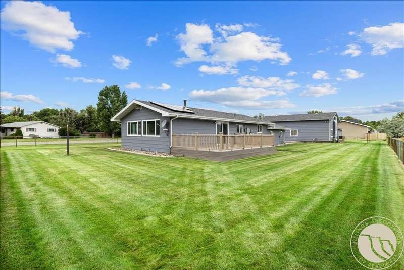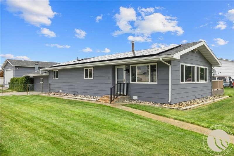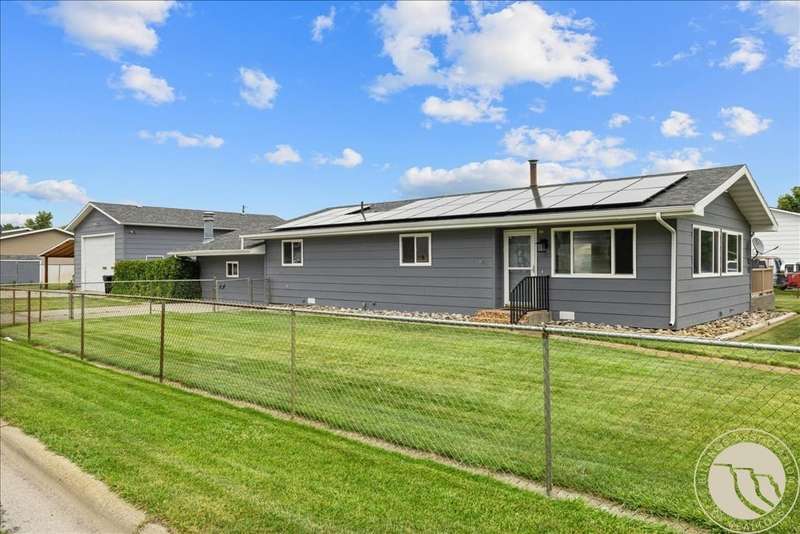 Spacious one-level, 3-bedroom, 1-bath ranch-style home on an oversized lot, featuring a heated and air-conditioned detached shop-ideal for hobbies, storage, and more! A generous carport and pull-through gate from the side alley provide added convenience and flexibility. Inside, enjoy a unique addition that includes a retro-style custom bar area and cozy wood stove, perfect for entertaining or relaxing. Step out onto the brand-new, oversized deck off the kitchen and dining area for easy outdoor living. The fully fenced yard offers two large storage sheds and a private Well to keep your landscaping lush, while the home is connected to city water and sewer. Energy-efficient solar panels help keep utility costs low and are included in the sale.
