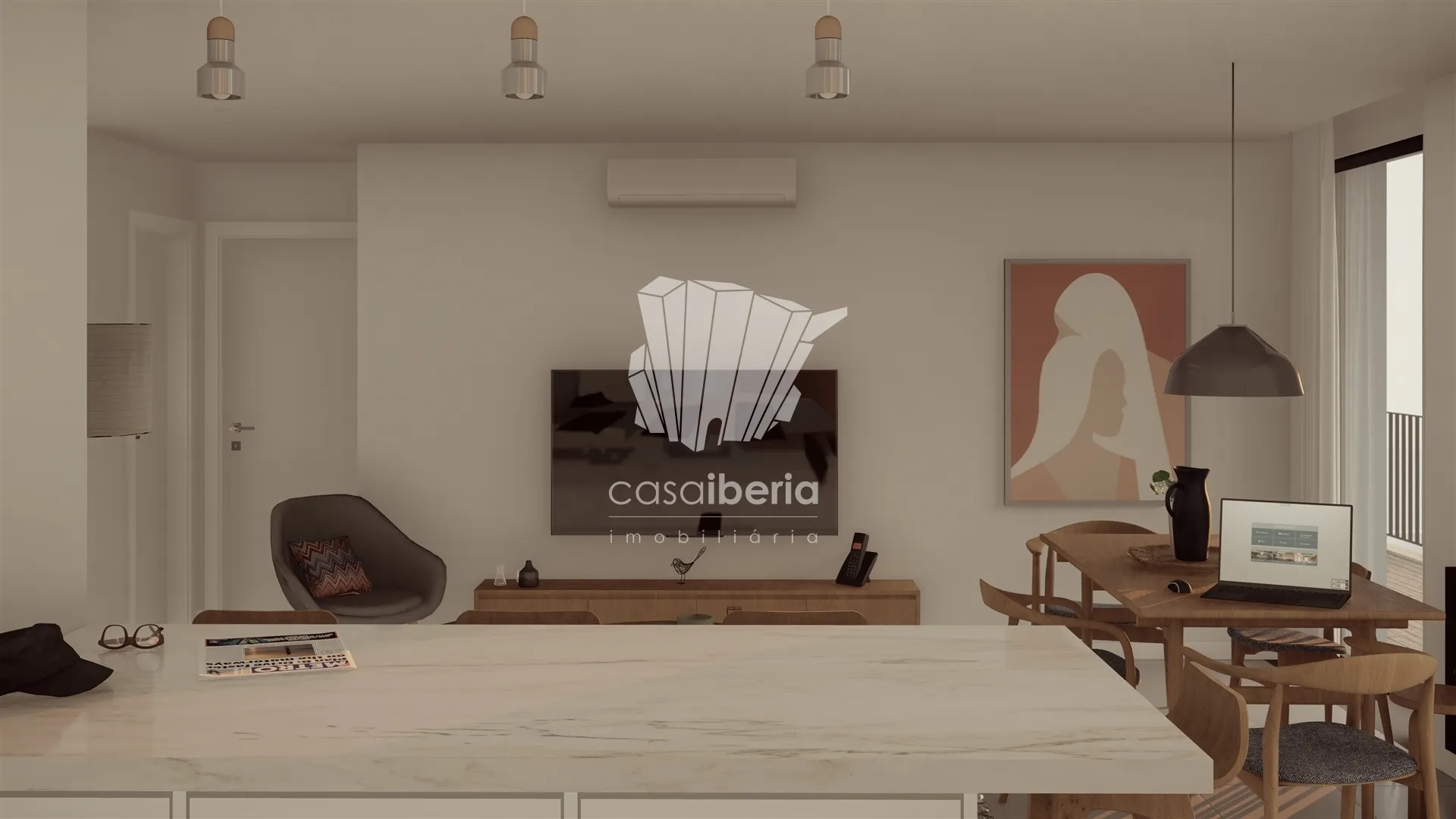The entrance hall leads to a bright, open-plan living room of over 25m2, seamlessly connected to a fully equipped 9m2 kitchen.The living room extends to a pleasant 11,60m2 balcony, perfect for leisure moments.Comfortable Bedrooms: One bedroom with a built-in wardrobe.A master suite with built-in wardrobe and access to a cozy balcony with 13m2. An additional guest bathroom.