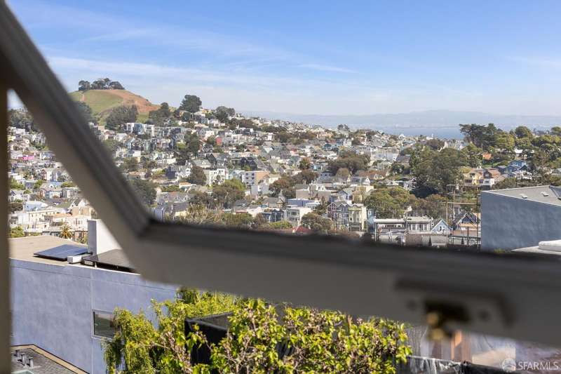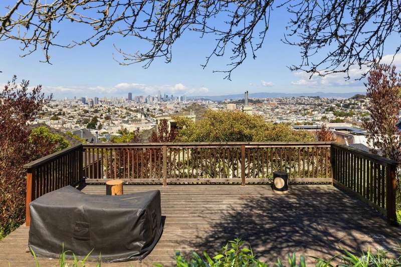 Set on a wide and deep lot (48' x 108'), this rare offering combines breathtaking views, premium location, and significant expansion possibilities well suited for developers or visionary homeowners. The existing home is move-in ready, featuring a formal living room with wood-burning fireplace, a sun-drenched view room, formal dining area, and an open chef's kitchen with breakfast nook. Two spacious bedrooms and a full bath are located on the main level, while the upstairs is dedicated to a generous primary suite with sweeping eastern views, ample closet space, and an en-suite bath. The expansive backyard offers multiple terraced areas with commanding views of the downtown skyline, Bay Bridge, and East Bay. The large footprint and deep lot provide ideal conditions for expanding the existing structure or reimagining the space entirely (buyer to verify). A full-height basement with multiple storage zones offers even more potential.