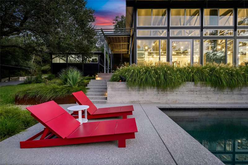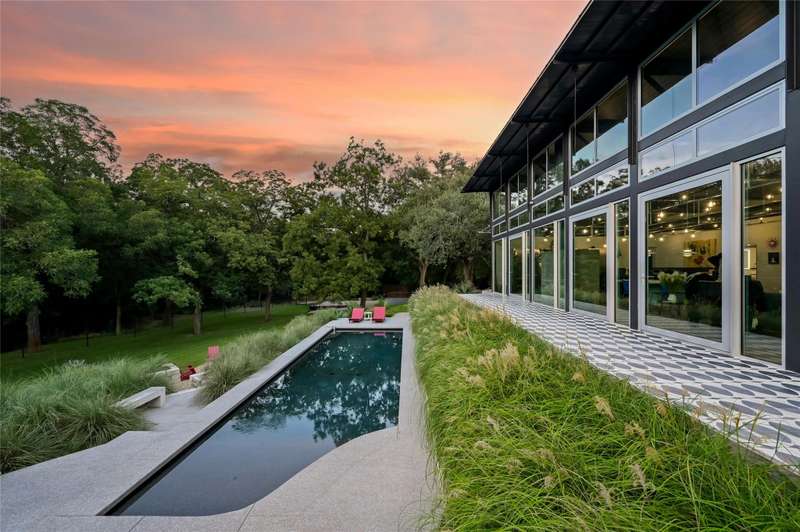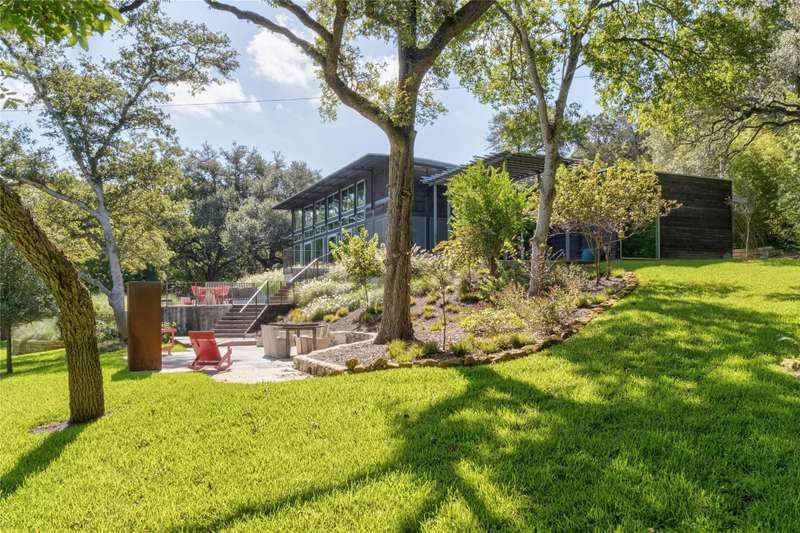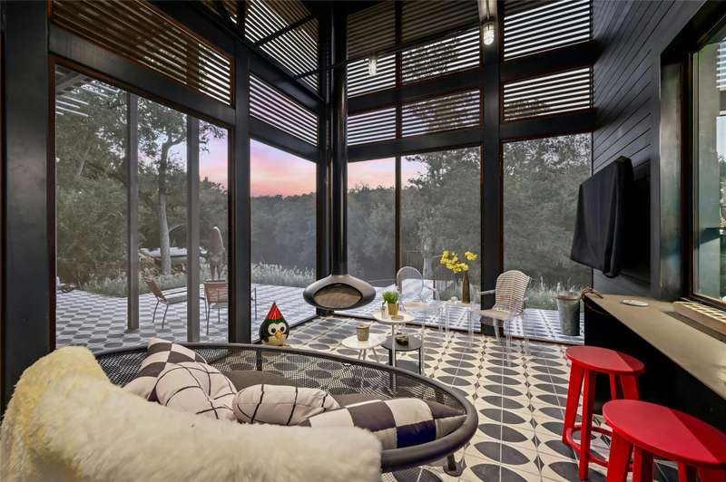 2212 River Hills Road is a masterfully renovated residence that harmoniously blends luxury with nature, set within a sprawling 4.65-acre sanctuary in Austin. Designed by the renowned Mell Lawrence and executed with precision by Miars Construction, the home is an epitome of refined craftsmanship. The main house features three spacious bedrooms, each adorned with new wood floors and enhanced by a state-of-the-art lighting system controlled by Lutron. A standout feature of the main living area is the expansive design, accentuated by six salvaged 58-foot bow trusses from a historic Nashville recording studio, creating a dramatic and unique architectural statement. The addition of a concrete fireplace and a Fire Orb in the screened-in porch further elevates the home's ambiance. The former workshop shed was converted to a detached lounge area that could also serve as a guest casita. In addition to the guest accommodation, the residence includes a meticulously finished Airstream, for add'l space to host family or friends for an overnight stay. The outdoor experience is equally impressive, with a newly redone pool, sleek fire pit, and a dog run outfitted with astro turf. The landscaping, designed by Word + Carr Design, enhances the serene atmosphere, while the new path lights and brick pavers add a touch of sophistication to the grounds. Modern updates extend beyond aesthetics to functionality, including a newly installed 40,000-gallon rainwater tank, updated solar panels, and a separate septic system. The property is fully equipped with battery-operated blinds, Sonos sound systems in key areas, and newly installed steelwork by Steel House. Improvements include a new electric gate and fencing by Enabler, insulated and finished garage space, recent wiring, a fully integrated lighting and sound system. 24-Hr Showing Notice. Tax and assessed values are estimates for illustration purposes only. All figures should be independently verified.
