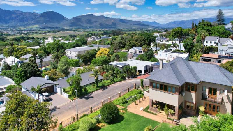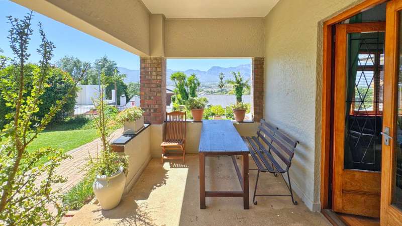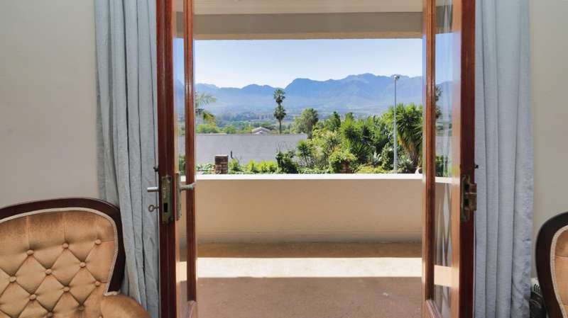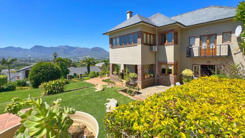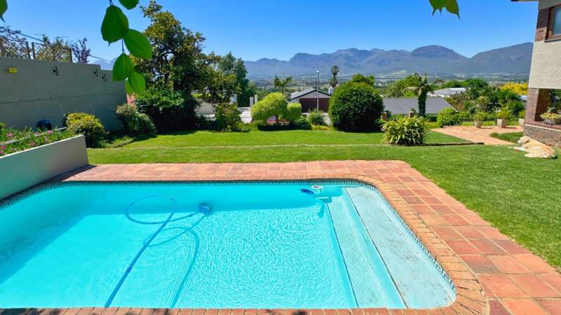 Nestled in one of Paarl?ÇÖs most sought-after neighbourhoods, this exceptional double-story home sits proudly on a generous double plot, offering both space and serenity. Boasting spectacular panoramic views from every room, this architecturally designed residence blends timeless elegance with modern comfort. Step inside to discover five spacious bedrooms, including a luxurious main en-suite, and a second full bathroom catering to the remaining rooms. Each bedroom features large windows that frame the stunning scenery, filling the home with natural light. The heart of the home is a warm and inviting open-plan kitchen and living area, complete with beautiful wooden floors, high ceilings, and two cosy fireplaces ?Çö perfect for family gatherings or elegant entertaining. A separate scullery keeps the main kitchen area clutter-free, adding to the home?ÇÖs functionality. A dedicated study offers the ideal space for remote work or a quiet reading retreat. Outside, a sparkling swimming pool is the centrepiece of the landscaped garden, creating a private oasis for relaxation and summer entertaining. Despite the tranquil setting, the property is conveniently located close to top schools and amenities, making it ideal for families. Other features include a single garage and ample outdoor space thanks to the double stand. This is a rare opportunity to own a distinctive home in a prime Paarl location, where design, comfort, and lifestyle come together seamlessly. Don't delay, call me today!