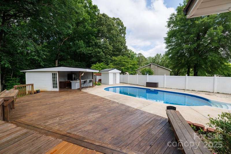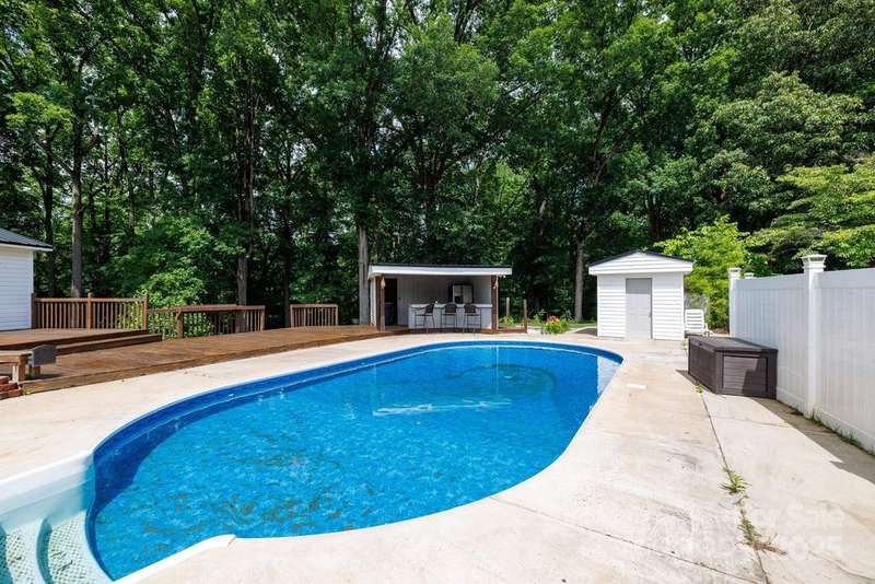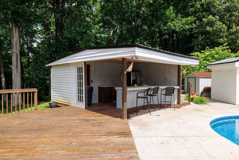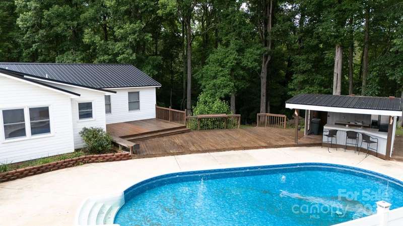 This 3-bedroom, 2-bath ranch sits on a peaceful 0.77-acre lot in the Lewisville school district, offering the perfect blend of space and privacy. Inside, you'll find an open floor plan with a beautifully updated kitchen, a cozy living room with a gas log fireplace, and a split-bedroom layout for added privacy. The large primary suite features a walk-in closet, whirlpool tub, and a large adjacent den?ideal for a home office or TV room. Step outside to your own private retreat, complete with an inground pool, expansive patio, deck, and fenced yard. The cabana with a bar and half bath makes outdoor entertaining a breeze. Additional features include a metal roof (2019) and a shed for extra storage. Enjoy the tranquility of country living away from the hustle and bustle! Property being sold in As-Is Condition.