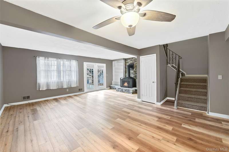 The owner of this home decided to give you a fresh coat of paint and add new flooring to the first level to instantly make you fall in love with the home as soon as you walk in! This home located in the desirable The Meadows Community in the Town of Wallkill. Let's talk about how this is an end unit which allows privacy and a spacious yard. When you enter you will notice the eat in kitchen that is followed by a formal dining room and open concept living room with a beautiful fireplace with shelving. Head over the french doors that lead to a large paver patio perfect for those family BBQ's. Upstairs you will find that the primary suite has its own full bath as well as 2 large closets. The other 2 bedrooms also have generous space along with the family full bathroom in hallway. What makes this community special is they have their own private clubhouse, basketball courts and better yet, its own private community pool. To add on to the list, just minutes away from Casinos. Waterparks and Lego land and all major shopping and restaurants and public transportation! Don't miss out on this one!!