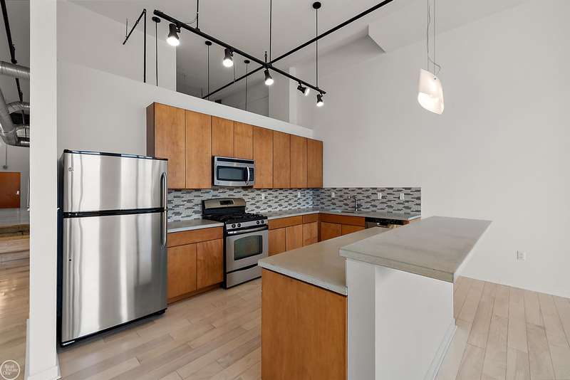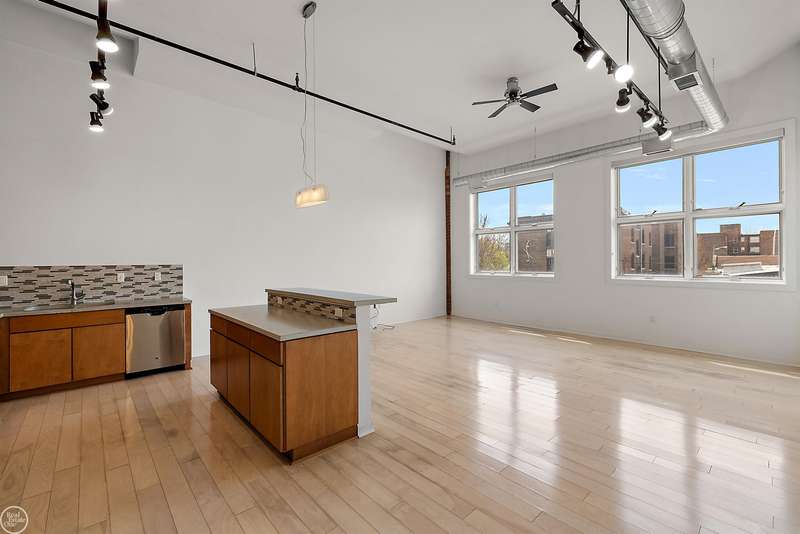 Experience the pinnacle of urban sophistication at Willys Overland Lofts in Midtown Detroit-one of the city's most vibrant and walkable neighborhoods. This spacious 2-bedroom, 2-bath loft boasts west-facing warehouse windows that flood the open-concept living, dining, and kitchen areas with natural light. Entertain in style with a modern kitchen featuring stone countertops, ceramic tile backsplash, stainless steel appliances, and an eat-in island beneath gallery lighting. Historic charm meets contemporary elegance with exposed brick, iconic martini columns, soaring ceilings, and gleaming concrete floors. Retreat to generous bedrooms, including a primary suite with a walk-in closet, and enjoy the convenience of in-unit laundry and abundant storage. Step outside to the best of Midtown-coffee shops, top restaurants, bars, retail, parks, and cultural/sports venues are just steps away. Walk to Wayne State University, the College for Creative Studies, Detroit Medical Center, and the QLine. Enjoy secure gated parking with one assigned space, visitor parking, a resident-only rooftop balcony, and an active NEZ-R tax abatement through 2028. Don't miss your chance to own a piece of Detroit's premier condo development and embrace the ultimate in modern, luxurious city living.