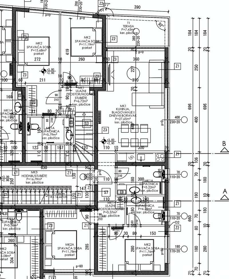 Apartment S-07 - 1st floor - residential area 66.06 m2 (2 bedrooms + 2 bathrooms) + loggia (7.44 m2 x 0.75 = 5.58 m2) + outdoor parking space PM7 (12.50 m2 x 0.2 = 2.5 m2); net calculated area 74.14 m2 = 398,502 EUR