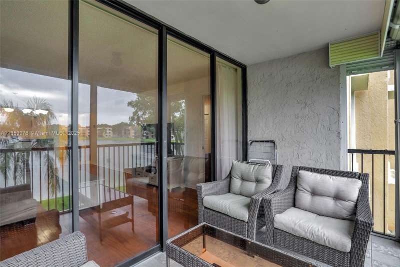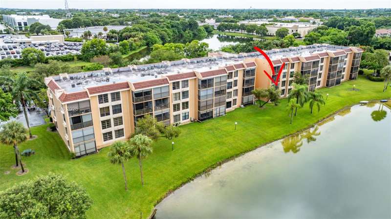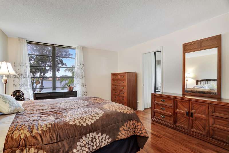 Enjoy the scenic water view from this updated second floor 2-bed/2-bath unit. Spacious primary bedroom has 3 closets with a shower only bath. Tongue and groove wood floors. Eat-in kitchen has granite countertops, modern cabinetry with extra storage under breakfast counter. Newer A/C, stackable washer dryer, and storage closet. Beautiful screened balcony with pull down shutters. 55+ community with multiple pools and clubhouse. Association requires 15% down and 650 Credit score. Must own 2 years before renting. Milestone inspection completeted. Fannie Mae approved community. Also for rent. Association information believed accurate but buyer should validate with management.