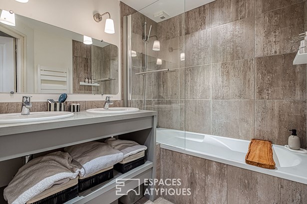 On the first level, the apartment offers a spacious main living area of ??approximately 47 m2, bright and refined, inviting both relaxation and conviviality. Its solid wood French ceiling and period fireplace enhance the warm and authentic atmosphere.