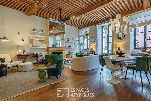 In the heart of Chambery's historic center, this unique 220 m2 duplex apartment (Carrez law) subtly combines authenticity and modern comfort. Located on the second floor of a characterful building, it captivates with its generous volumes and unique charm.